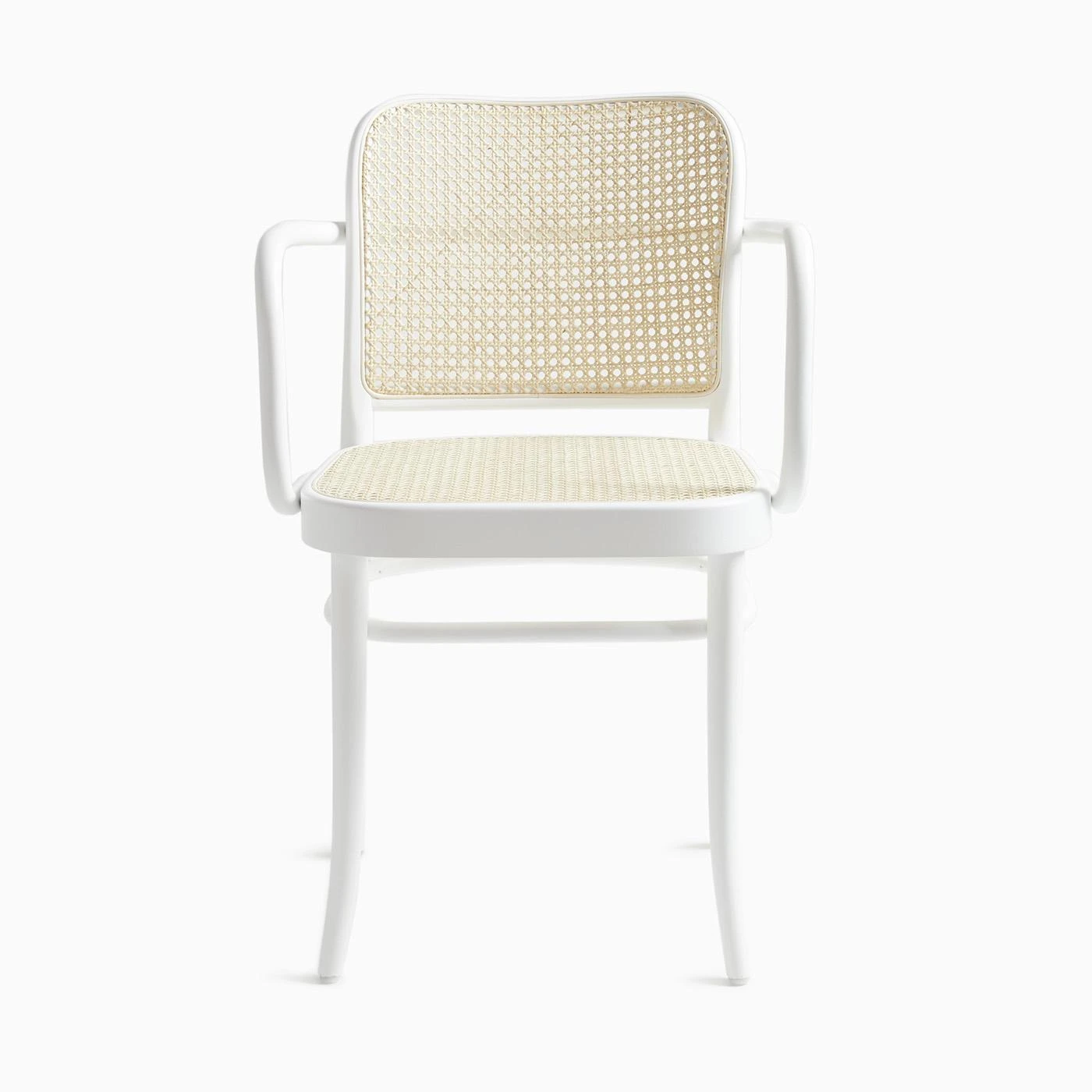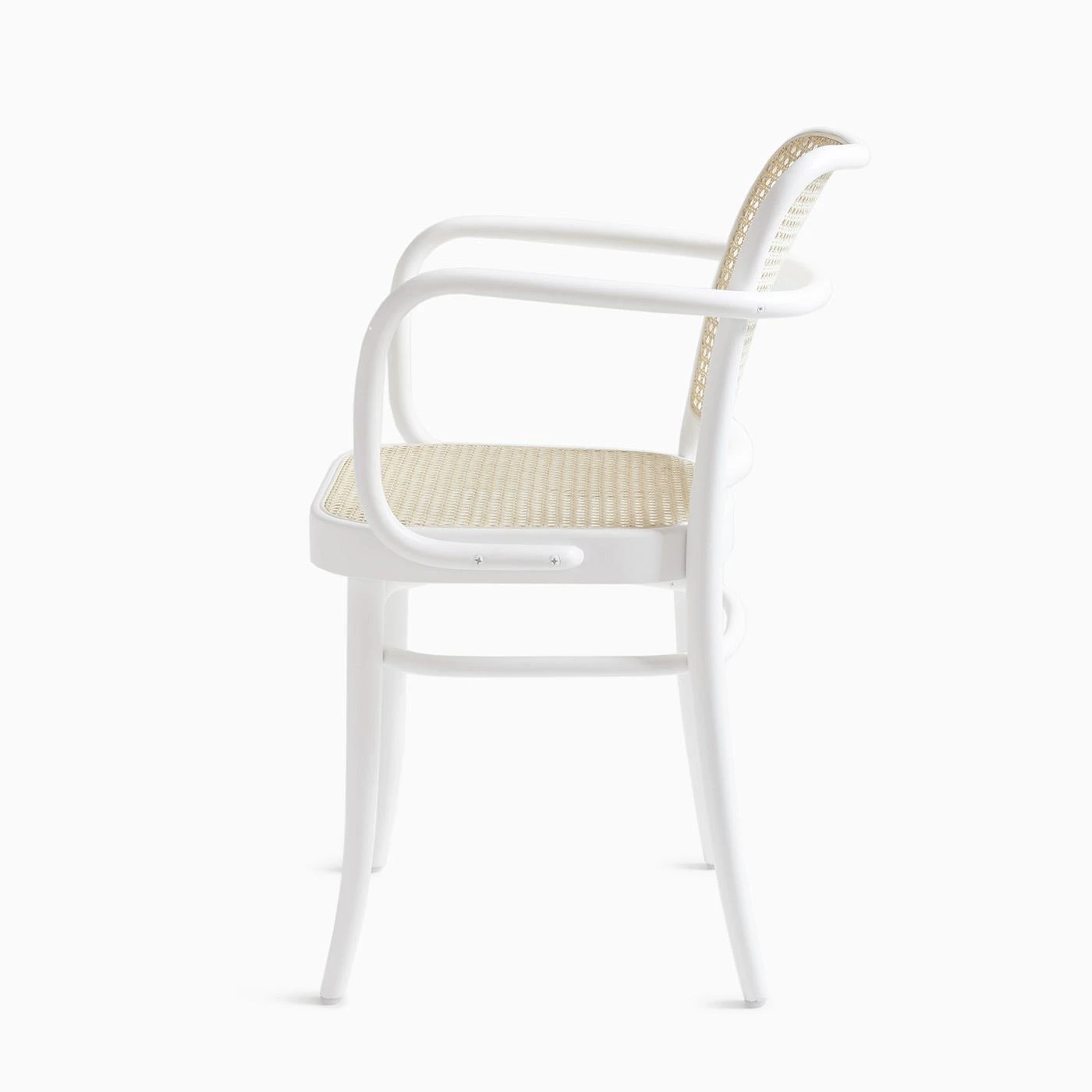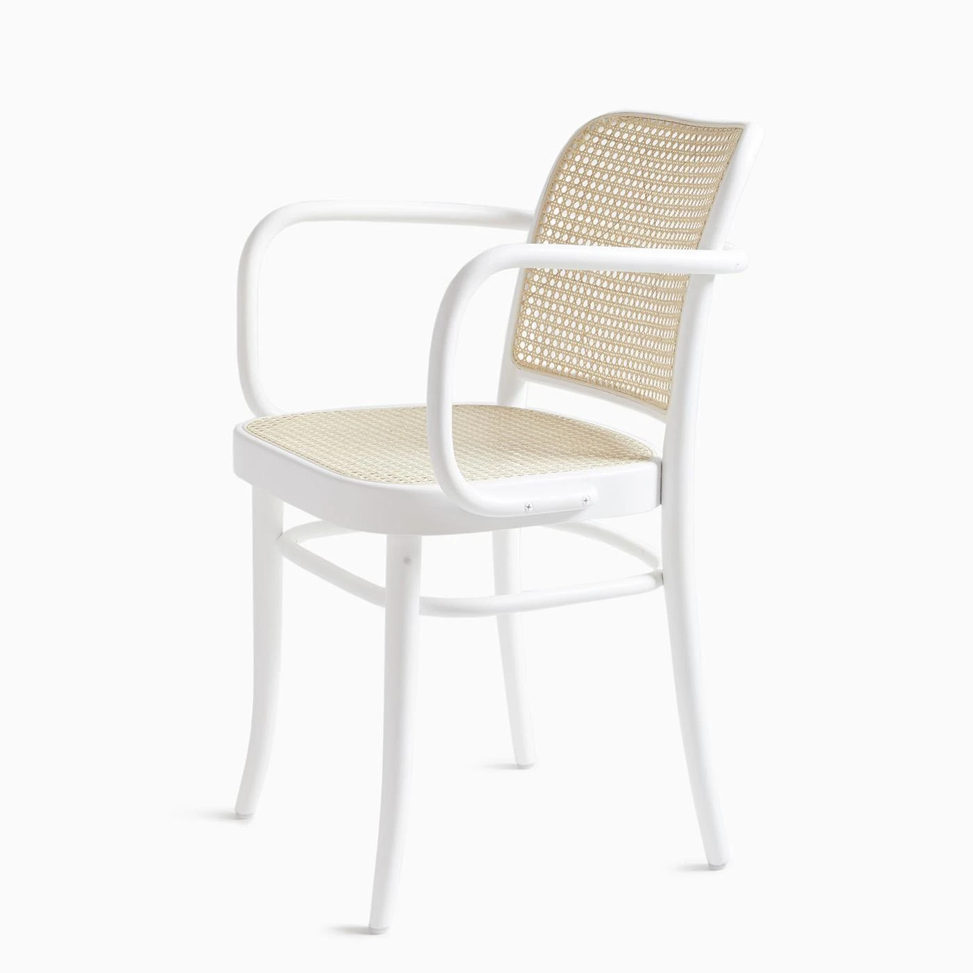 Based on Josef Hoffmann’s classic 1930 Wiener Werkstätte design, the 811 Armchair is crafted in the Czech Republic from steam bent solid beech wood and natural rattan cane using techniques that have been in practice for over 150 years. An iconic piece of modernism, its timeless design in crisp white highlights the chair’s striking silhouette.