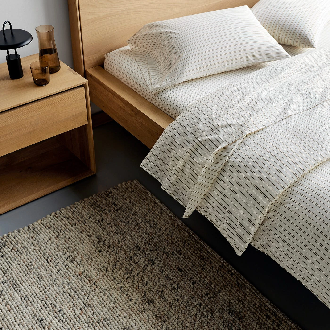 Handwoven using 100% wool, the Agner Beige Rug instantly adds a warm feel to hard flooring and helps to create distinct areas within the room. The looped design features slightly visible warp threads and creates a lightly pebbled texture. Variegated light tan yarns include flecks of various grays and browns along with hints of raw sienna, resulting in a mesmerizing pattern. Finished with self-bound ends, this reversible wool rug offers excellent durability. The various size options are well-suited to range of living rooms, dining rooms and bedrooms.