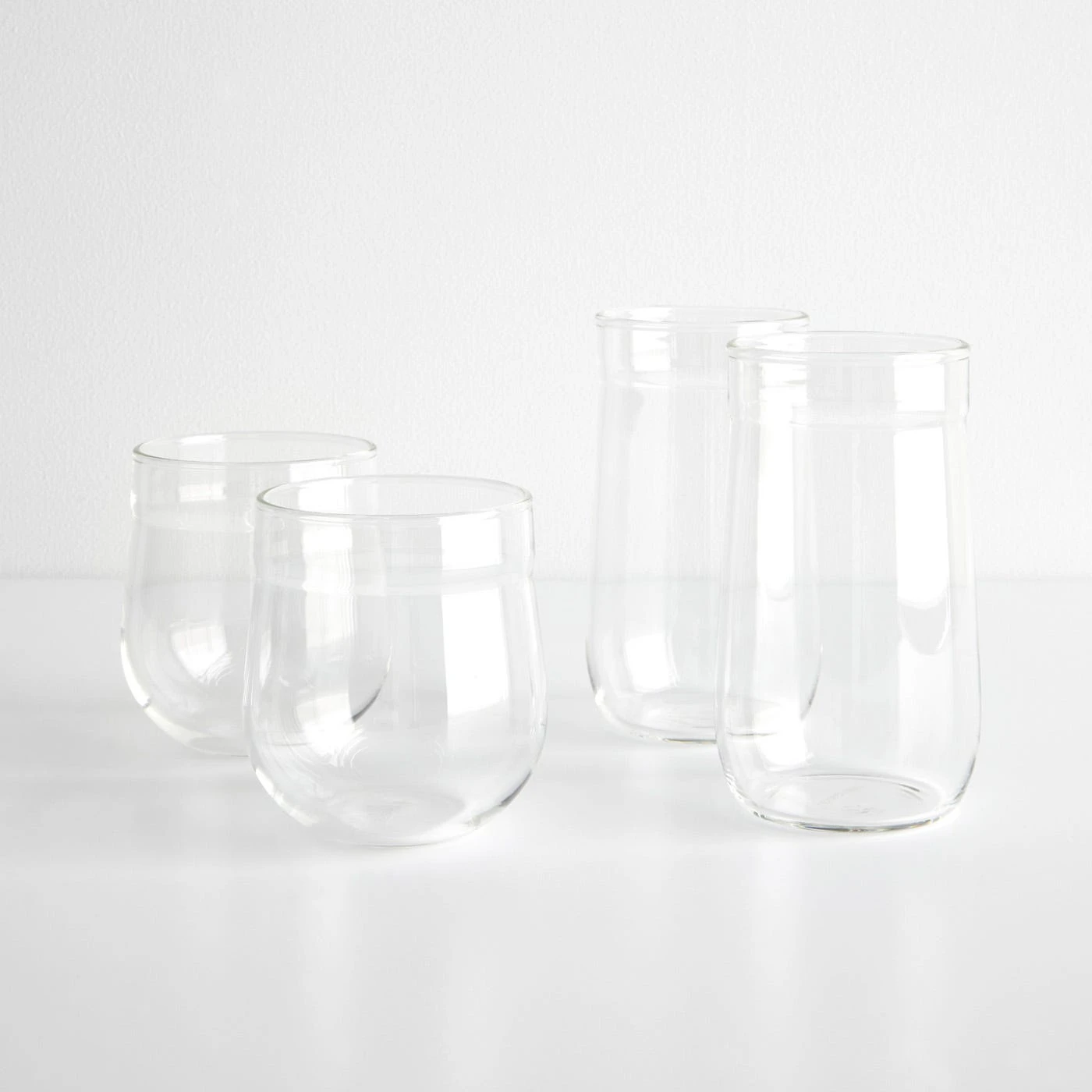 Go ahead, take a sip. This set of double old fashioned glasses will quench your thirst for thoughtful design. They’re handmade from durable borosilicate glass, so you can enjoy hot or cold drinks without worrying about the glass cracking. The perfect size for your morning celery juice or evening cocktail, you’ll reach for this crystal clear glass all day long. The unique bell shape feels great in your hand and the angled lip means not a sip goes to waste.