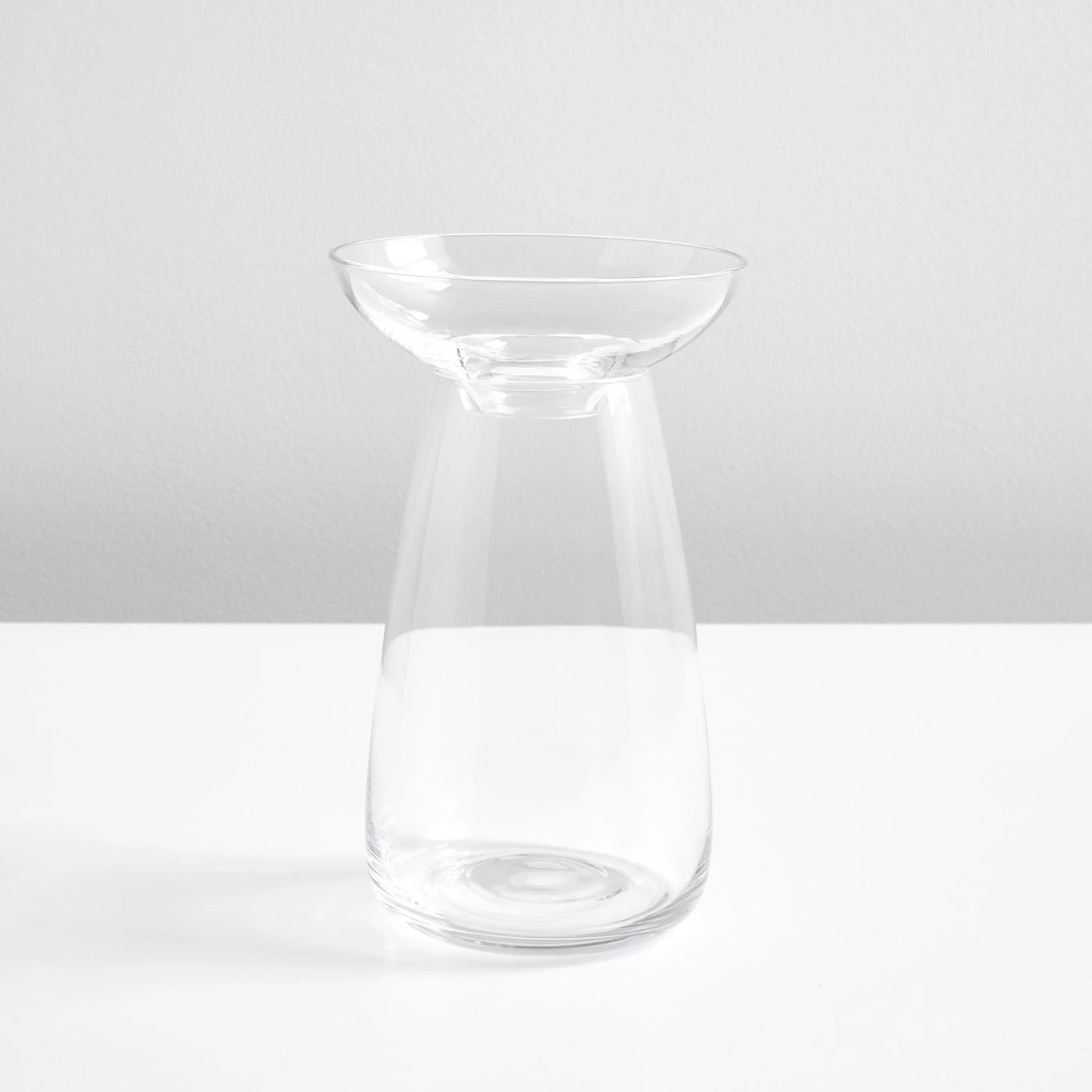 Whether you’re supporting a bulb or a full-stemmed bloom, both can be shown off beautifully in this two-piece vase. Use it to cultivate bulbs and show off their natural beauty, as they appear to float in the rounded top bowl. You can also remove the bowl and use it as a simple vase for small cuttings. The clear glass enhances the effect and is a sophisticated addition to any decor scheme.