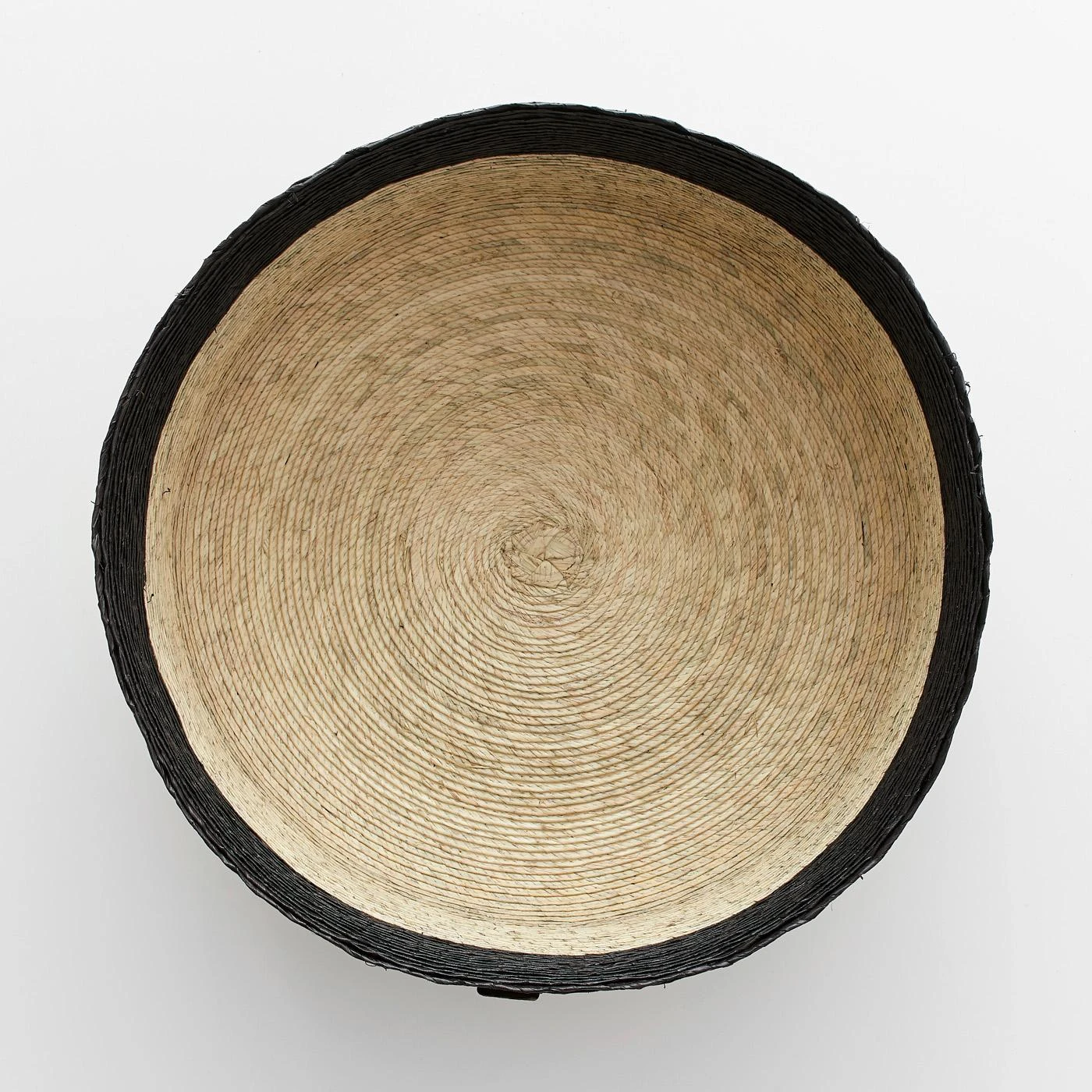 Add a natural accent to your living space with this basket’s neutral base and black exterior. The Black Band Basket Collection is handcrafted by skilled artisan families in Mexico by Makaua, a company that derives its name from the ancient Nahuatl language, meaning “giving a hand.” The tradition of weaving natural palm leaves into functional baskets goes back hundreds of years, and with this collection, history and quality are woven into each piece. With a 14” diameter, this is the most spacious Makaua round basket and is ideal for storing larger items like books and magazines.