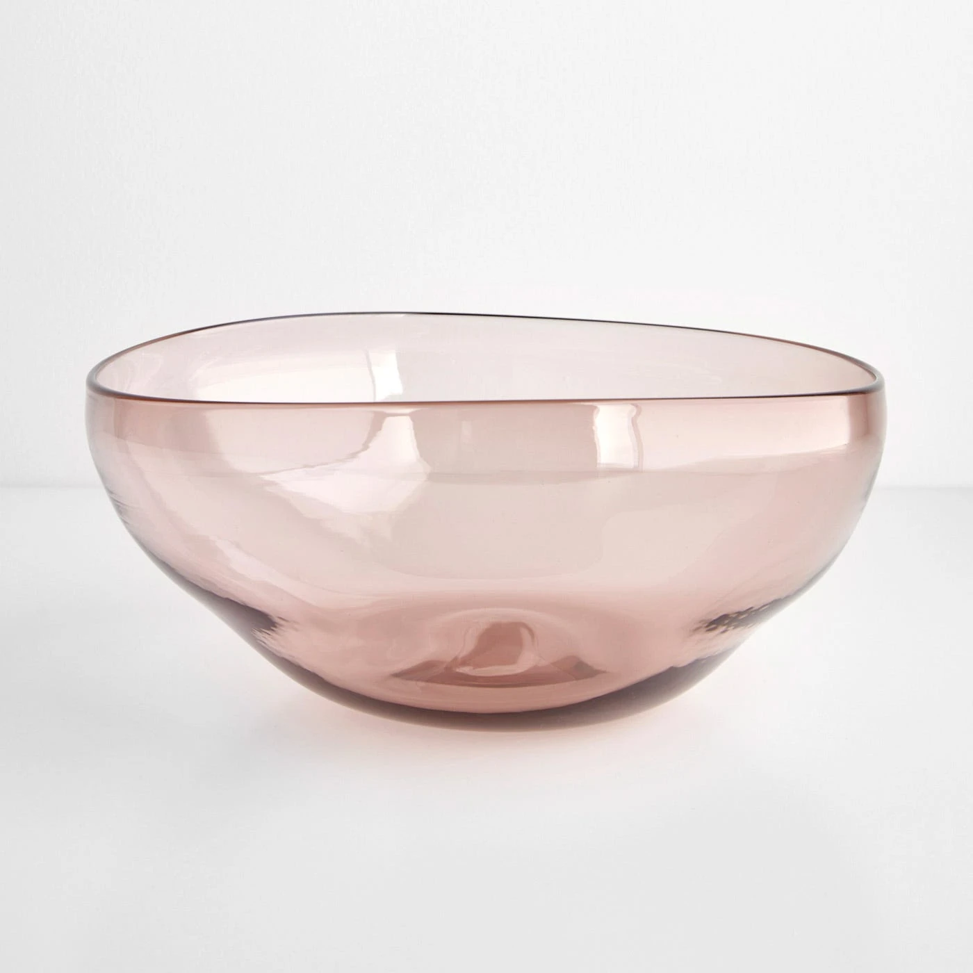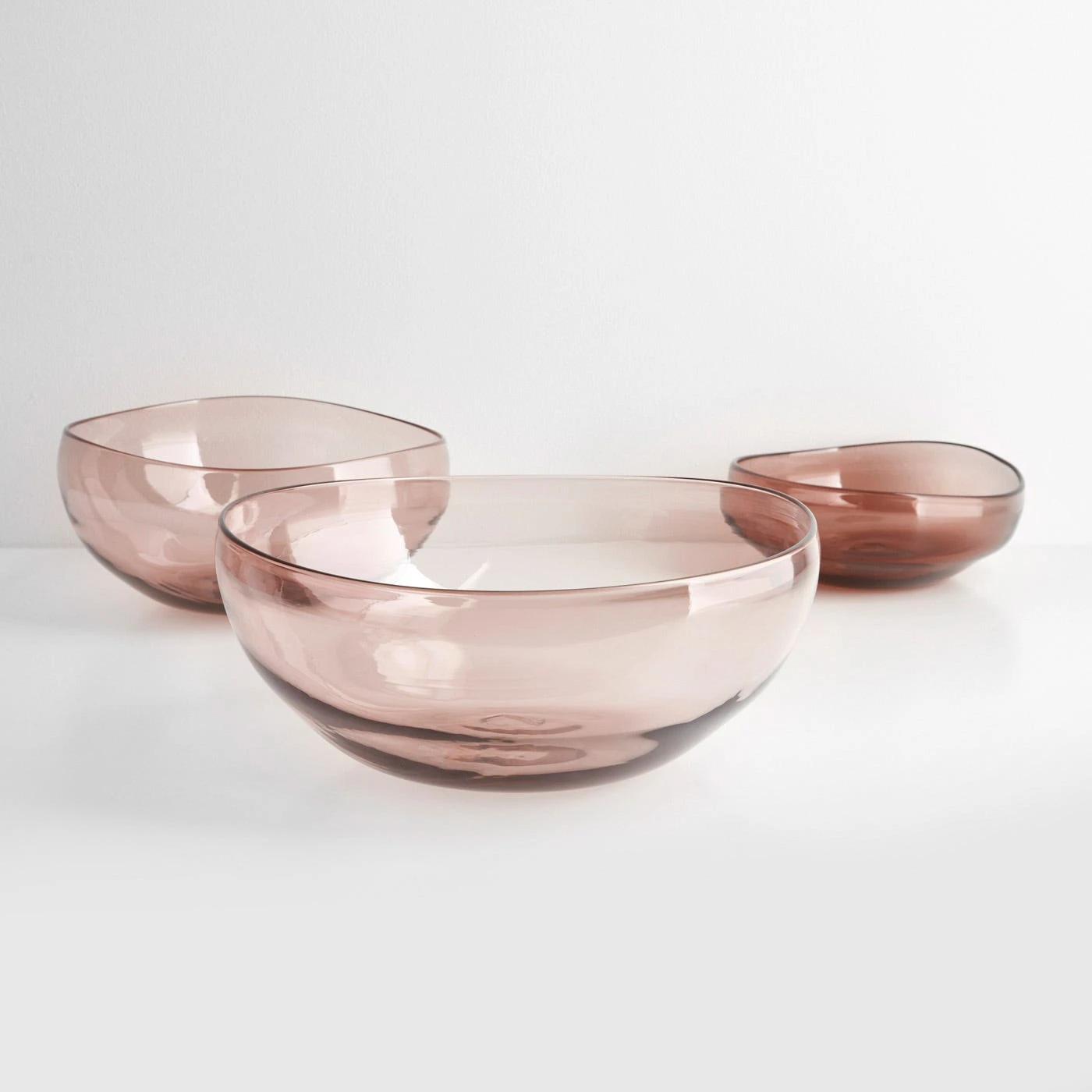Enjoy this organic spin on the traditional stacking bowl. Made in Portland, Oregon by Gary Bodker Designs, each handcrafted rose-tinted red glass bowl is truly one-of-a-kind, varying slightly in shape and size. Perfectly imperfect lines and curves contribute to a distinctive accent that also functions as a practical serving piece for the home. Use alone or as a set with the small and medium sizes to serve up flavorful culinary creations or display fresh fruits and vegetables. The rich, rosy tone brings a touch of inviting warmth to your space.