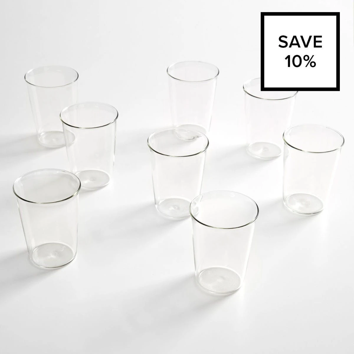 The Cast Medium Tumblers are the ideal drinking glasses. Every proportion of these Japanese-designed tumblers is carefully considered. Its perfect rim spans outward at a slight tilt, allowing drinks to flow effortlessly from glass to mouth. Made from heat-resistant borosilicate glass, these tumblers are durable enough for daily use. Stock up on glassware and save 10% with the 8-piece bundle. Also sold individually.