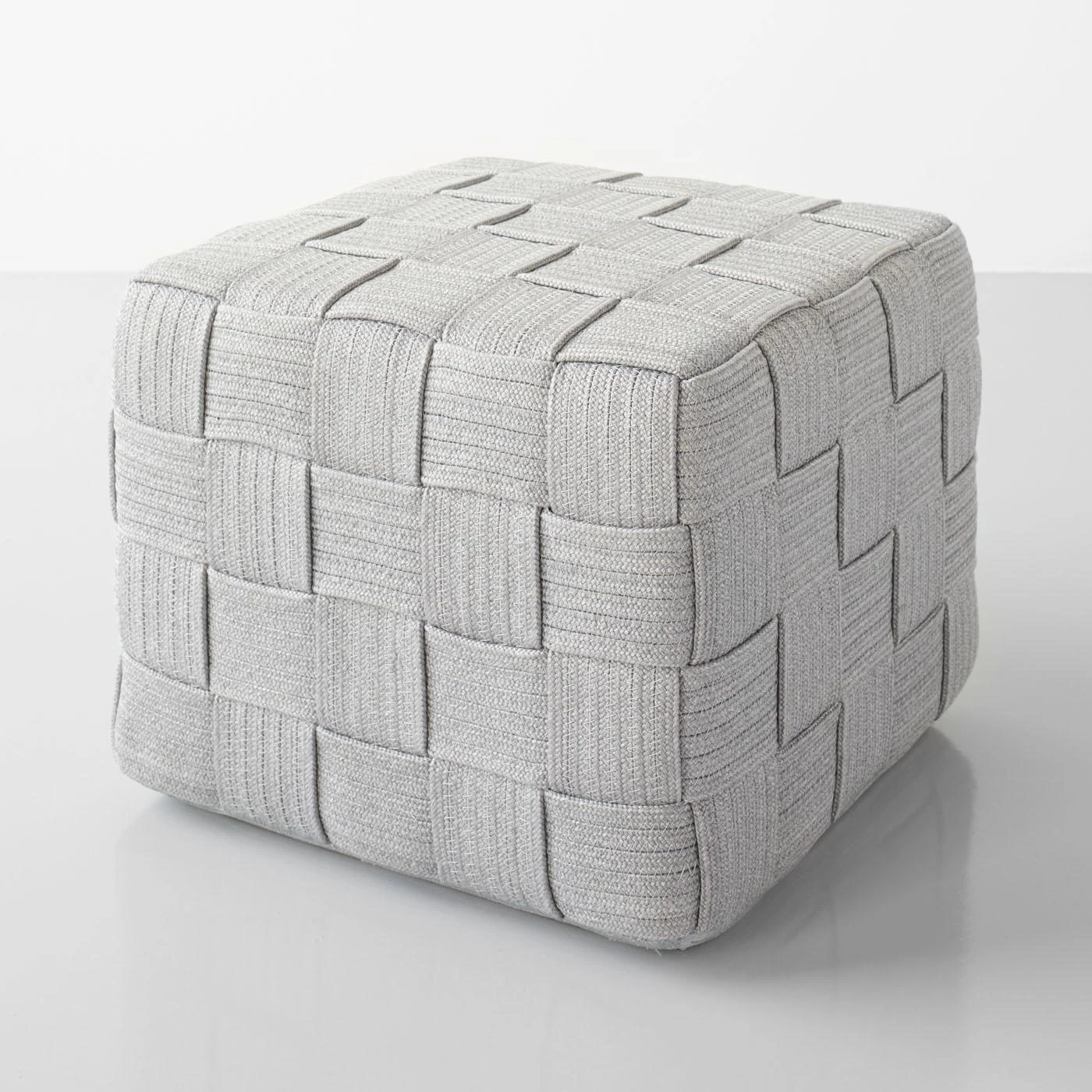 This cubed ottoman brings the best of functional versatility to indoor and outdoor spaces alike. Made of soft, UV resistant polypropylene belt-like straps and handwoven to create a classic textured basketweave, this distinguished stool is filled with quick-dry foam and features a mesh bottom to help with air circulation. Strong and durable, it also doubles as extra seating for guests. You can even tuck one under the entryway console for a convenient spot to slip on shoes. This light gray footstool coordinates beautifully with warm wood tones.