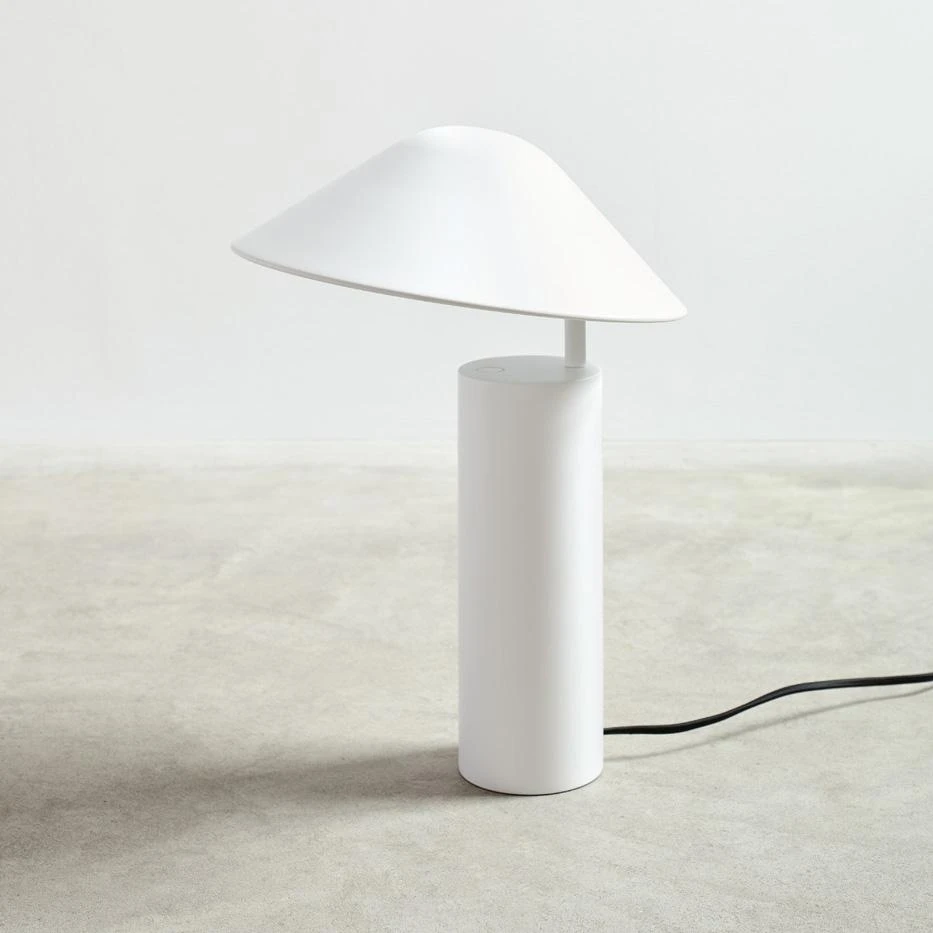 Simplicity derived from nature. The Damo White Table Lamp flaunts its distinctive design with a shape resembling a wild mushroom. Perched atop a solid cylindrical base, the smooth, curved shade adjusts, shining light right where you need it. Impressive details like a textile-covered cord and a seamlessly integrated push value switch allow the minimal, clean lines to shine through without interruption. Make this white desk lamp the focal point of your desk or a functional work of art in the living room.