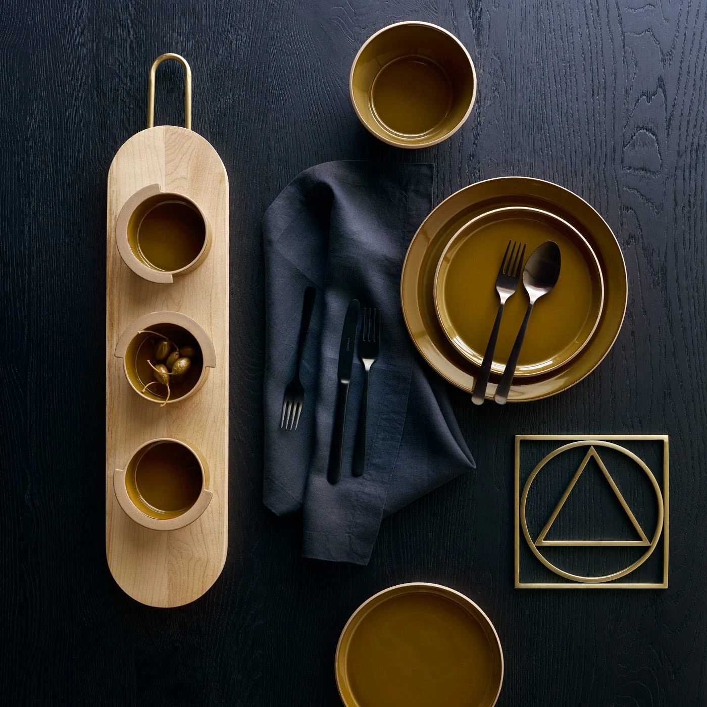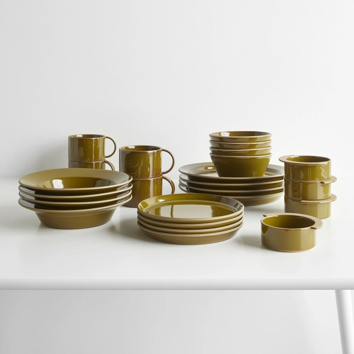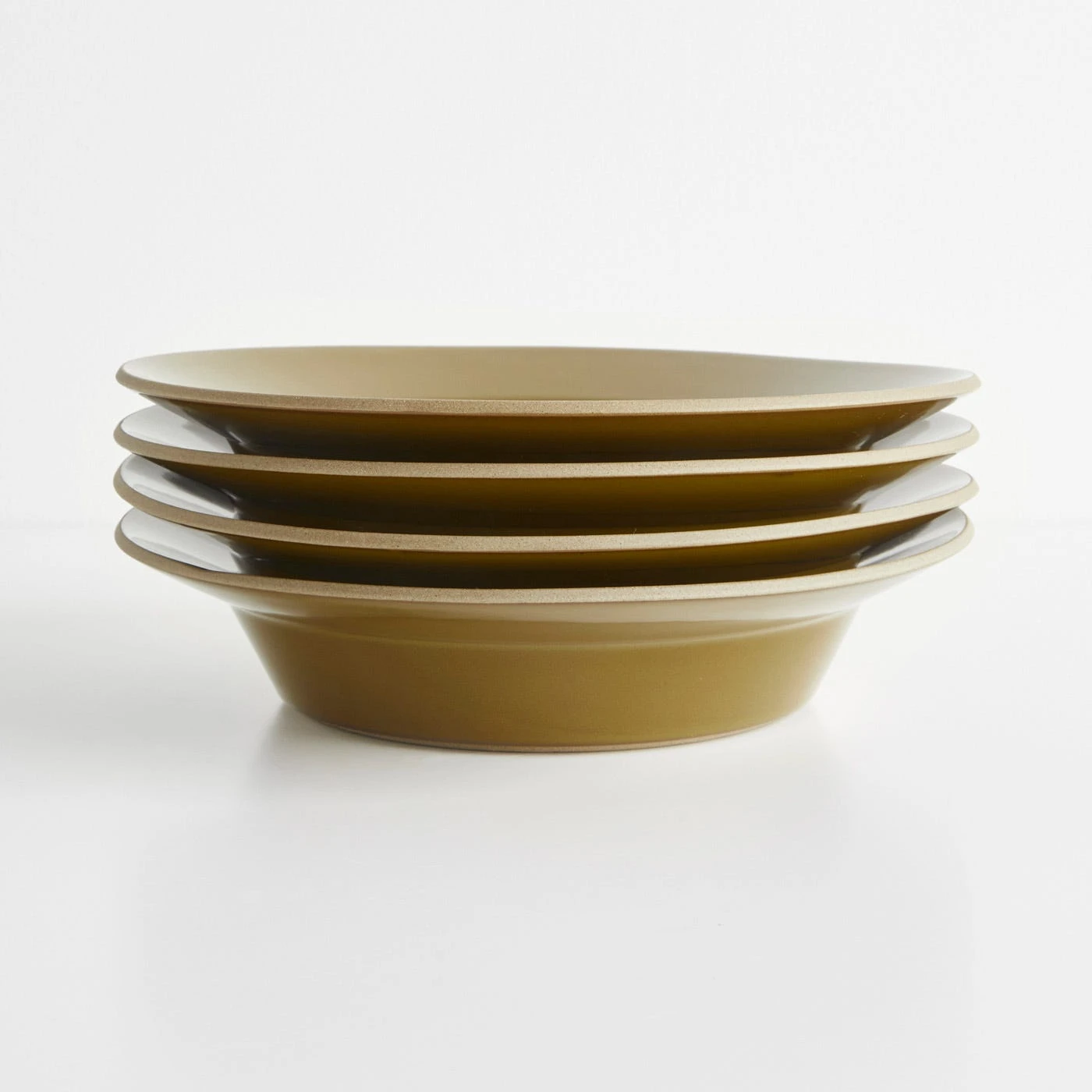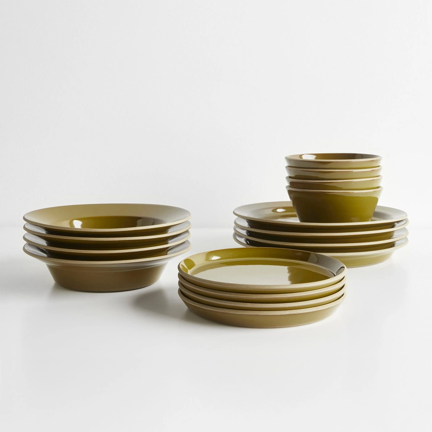 Earthy tones meet modern shapes with this versatile dinnerware collection from Departo. A rich shade of green-brown sets off this stoneware with a distinctive and rich reactive glaze. Unglazed raw clay rims provide just enough contrast and variation for each piece. This dinnerware collection is solid enough for everyday use. Each bowl is stackable so you can maximize your storage space, plus they’re microwave, dishwasher and freezer safe. The deep-set shape and wide rim make it uniquely suited to handle any dish with sauce — from curry to pasta.