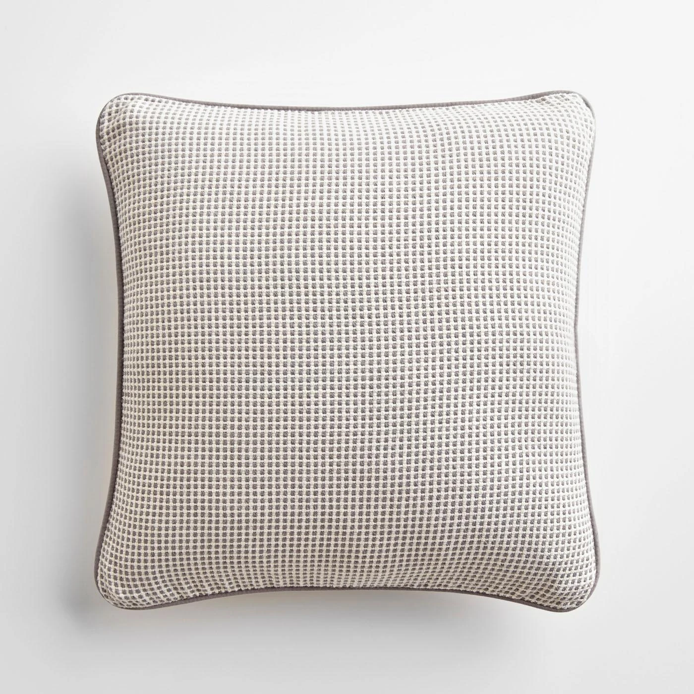 Texture and pattern make this woven pillow cover the perfect accent for your bed or sofa. Crafted in Portugal from 100% Oeko-Tex® certified cotton it exceeds typical quality standards and has not been treated with chemicals. The contrasting gray and ivory dobby weave add a geometric pattern to this modern pillow cover. It is edged with soft gray cotton piping and features a hidden zipper. This pillow cover is machine washable so you don’t have to stress about little spills.