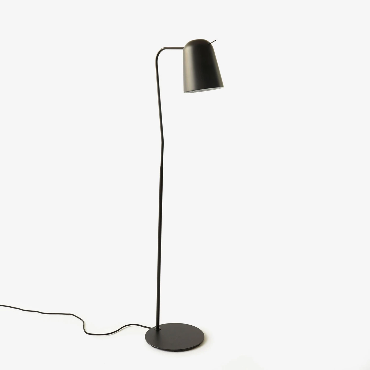 - Steel with matte black finish shade, arm and base, black textile cord.