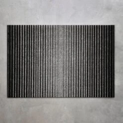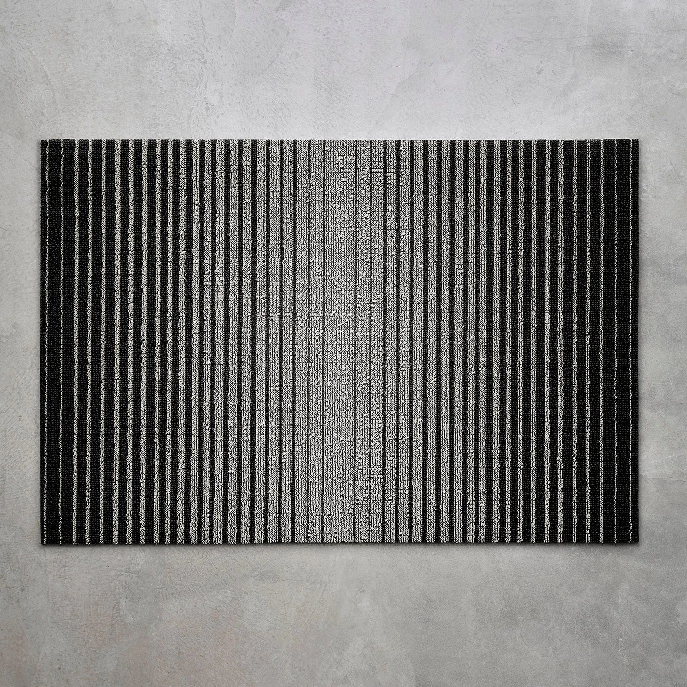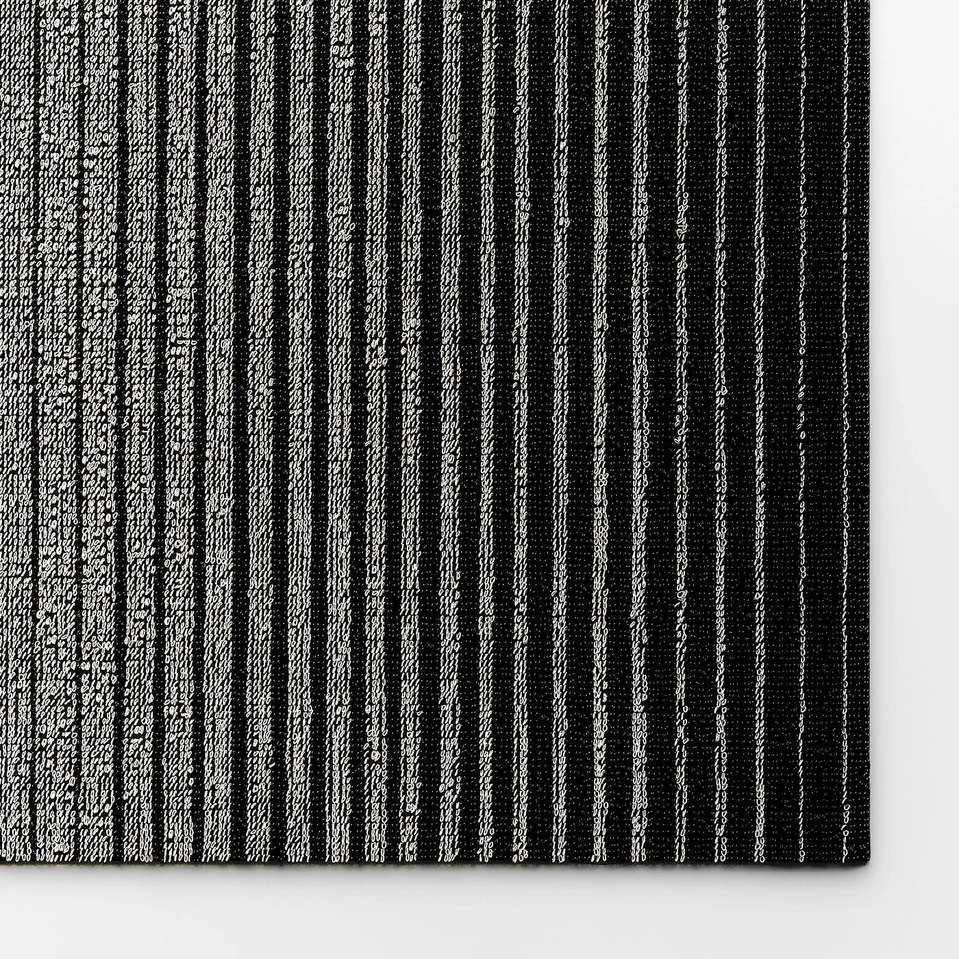 The Domino Shag Black and White Utility Mat offers a slip-resistant solution for the home. Suitable for indoor or outdoor use, this quick-drying, all-weather rug features a textured surface crafted from durable, eco-friendly TerraStrand™, an innovative Chilewich material which is free from lead and phthalates and resistant to mold and mildew. This material doesn’t stain or fade easily, so the dynamic black and white stripes with a cascading ombré effect won’t suffer from frequent use. No rug pad is necessary thanks to this utility mat’s waterproof vinyl backing.