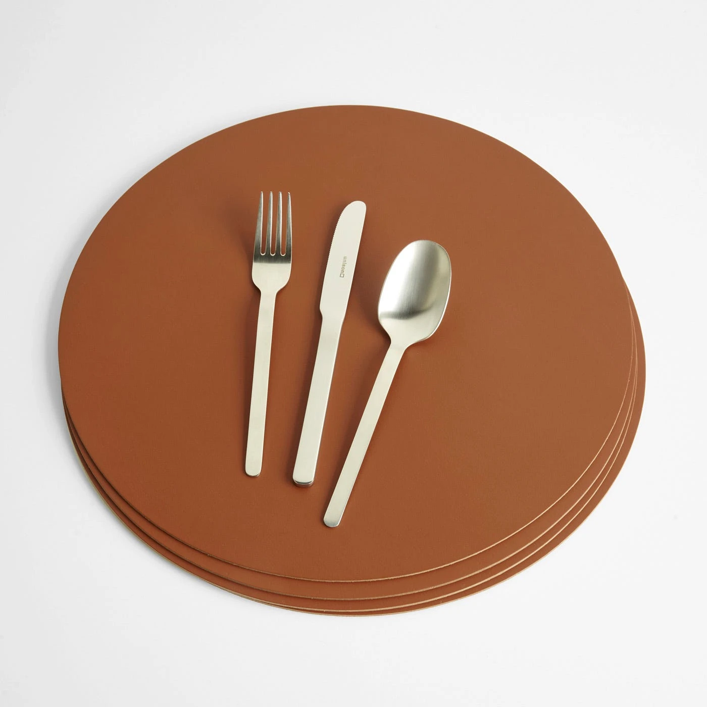 A leather placemat that looks good on your table while doing good for the planet. Crafted in Spain from recycled leather, this round mat uses scraps that would normally be discarded. Made sustainably, easy to clean, and built for durability. The classic round shape and muted colors lend an organic warmth to your table setting. The Cognac placemat adds richness and depth to your table without taking over.
