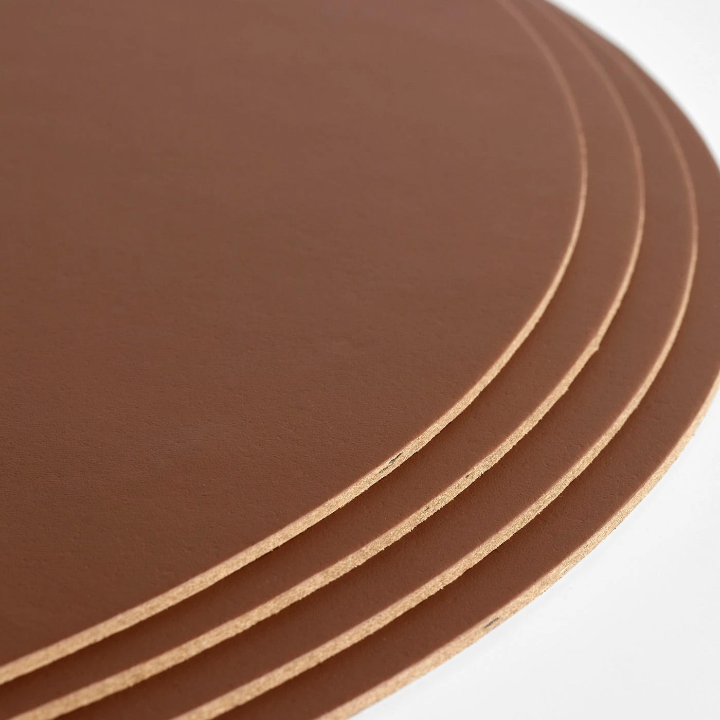 Things come full circle with these recycled leather placemats, crafted in Spain. In the production process of this material, off-cuts discarded by the leather industry are given a second life. These scraps are recovered, cleaned, compacted and bonded with latex and other natural fibers before being transformed into a new sustainable and environmentally-friendly material of the same durability as regular leather. Add some organic warmth to your next meal with this pecan leather placemat.