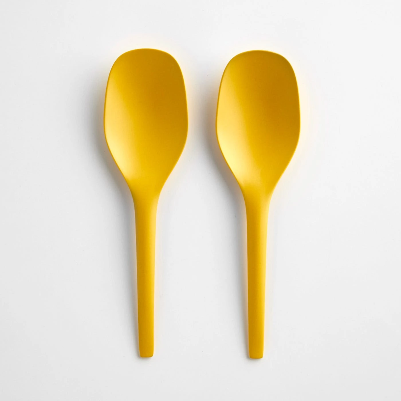 The Ekobo Salad Servers Set features two beautifully crafted and brightly colored yellow utensils you’ll be proud to bring to the dinner table. Generously sized scoops with a wide and shallow shape assist in tossing fresh greens, serving saucy pasta or dishing out portions of sides and entrees. These eco-friendly servers are lightweight and durable, making them a great fit for indoor or outdoor dining. They’re also made using eco-friendly and durable materials, including organic bamboo fiber and food-grade melamine. Pair this salad utensil set with the matching lemon-colored salad bowls and serving dishes from the same series.
