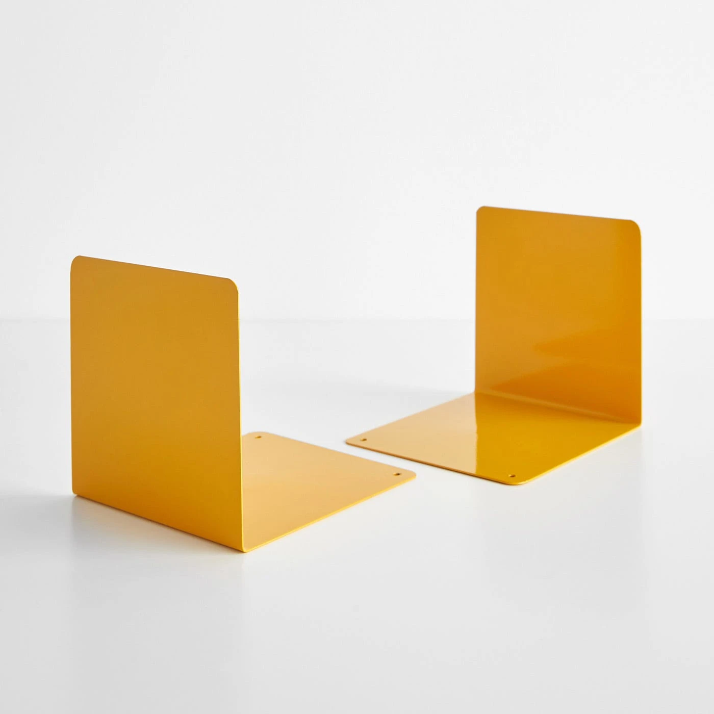 These minimalist steel bookends can fit in anywhere. This steel set of bookends is versatile enough for any room you choose — your home office, living room and in the bedroom. Made in Italy, the neat lines of these bookends form a classic L-shape designed to keep your books in place. Clean, timeless and modern, these bookends have a glossy powder coat on the steel to give them a little extra dimension. A bright shade of yellow makes these bookends ideal for any space that could use a little color.