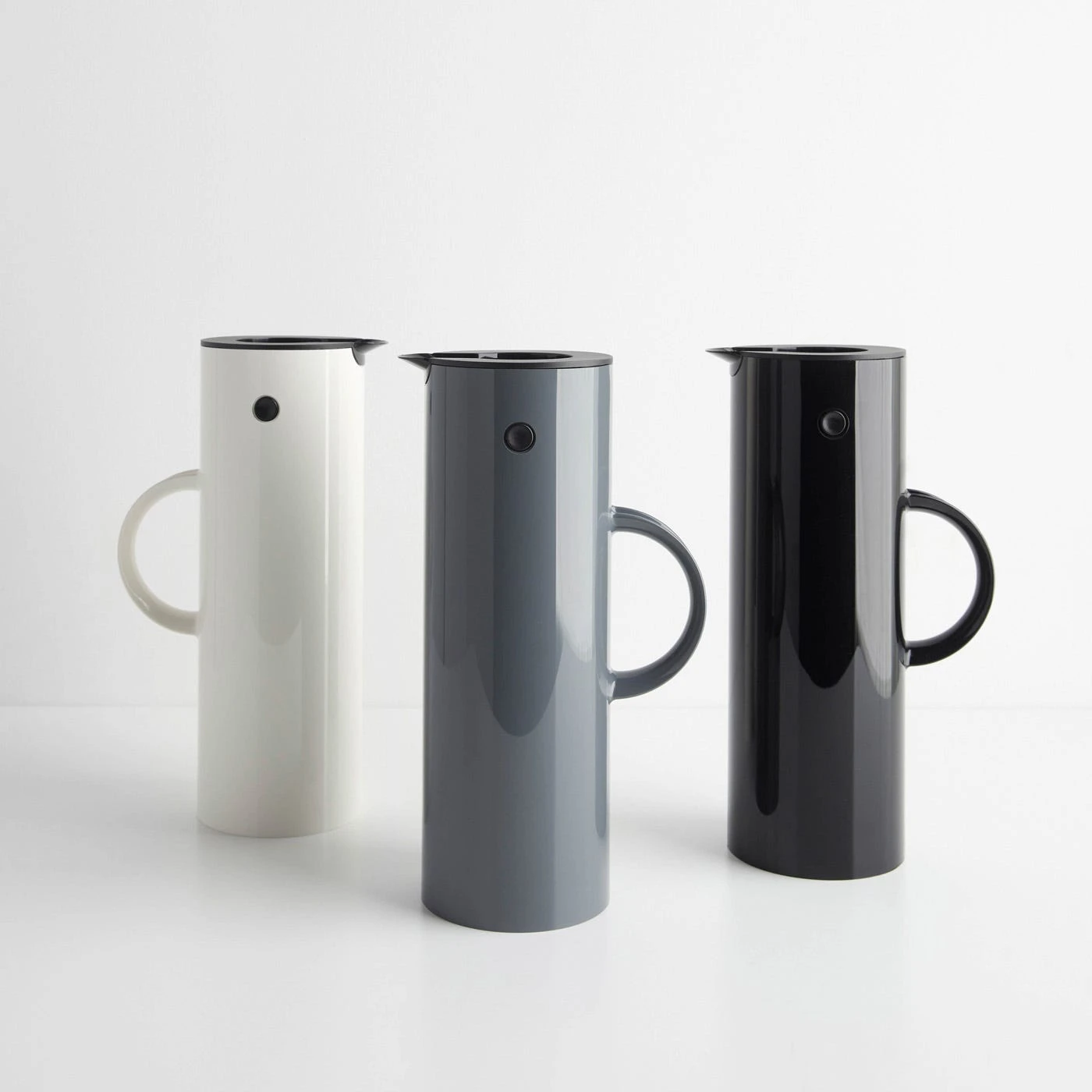 Originally developed by Danish designer Erik Magnussen in 1977, the EM77 White Vacuum Jug is a useful and practical thermos-style jug that keeps hot beverages hot and cold drinks cold. Made with a plastic body and inner glass sleeve, Magnussen intentionally chose these materials to make his product long-lasting and affordable. With its rocker stopper that allows for an easy, one-handed pour, and additional screw cap that can be used to keep the jug sealed when on the go, the EM77 Vacuum Jug is a timeless design that continues to enhance everyday life.