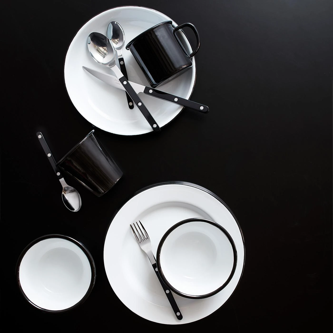 Come pull up a chair at the table where casual chic is as effortless as it is distinctive. Falcon Enamelware has been an icon of British home life since the 1920s, and with good reason. The porcelain enamel coating is fused onto heavy-gauge steel to deliver enduring strength and smoothness. Plus, it’s dishwasher-safe and oven-safe up to 530 degrees Fahrenheit. Not to mention that the updated classic of ice white with a black rim is casual elegance at its best. The final result: a look that reflects iconic British design and iconic mod, no matter the continent. A 10% set discount is applied for purchasing the 12 piece bundle.