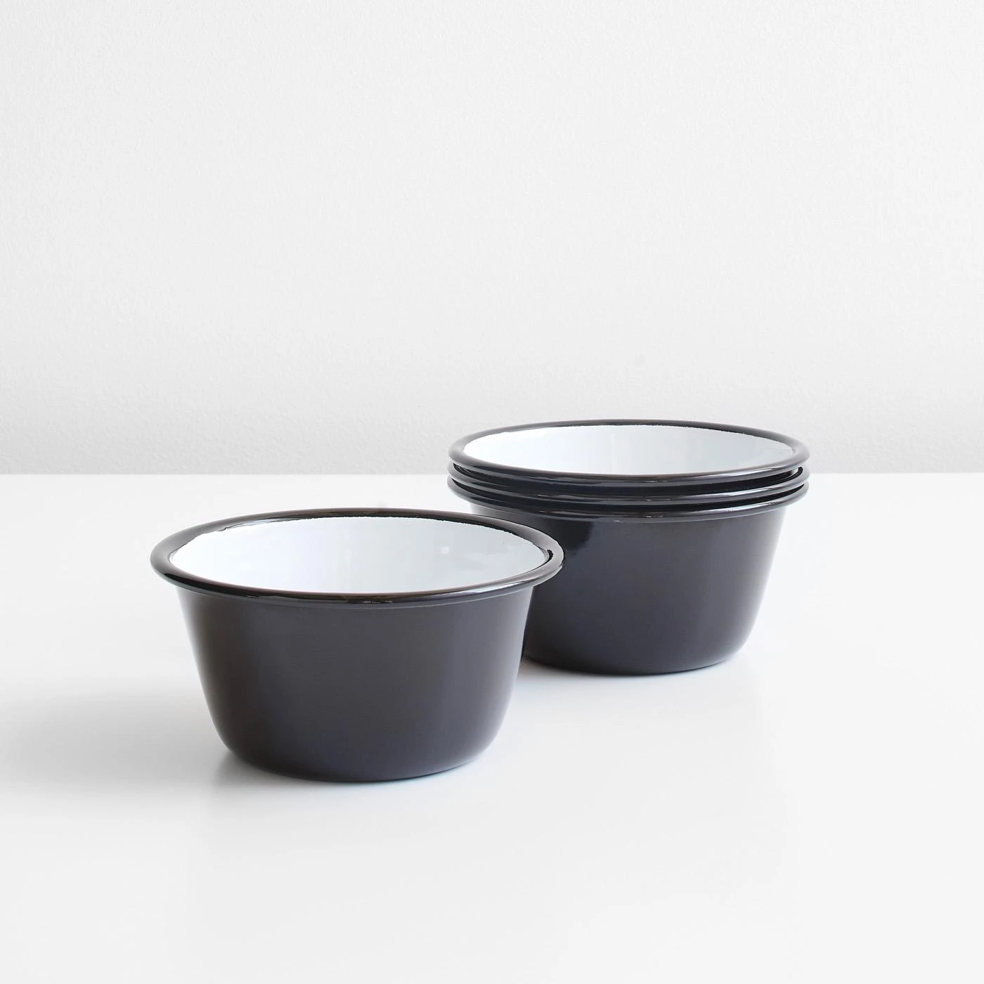 Falcon Enamelware has been an icon of British home life since the 1920s and continues to be a dinnerware staple today. These designs are notable for their porcelain enamel coating that is fused onto heavy-gauge steel to deliver enduring strength, smoothness and chemical resistance. The Falcon Black Enamelware Bowls feature a contrasting black exterior against a crisp white interior, a classic color combination that is made to last.