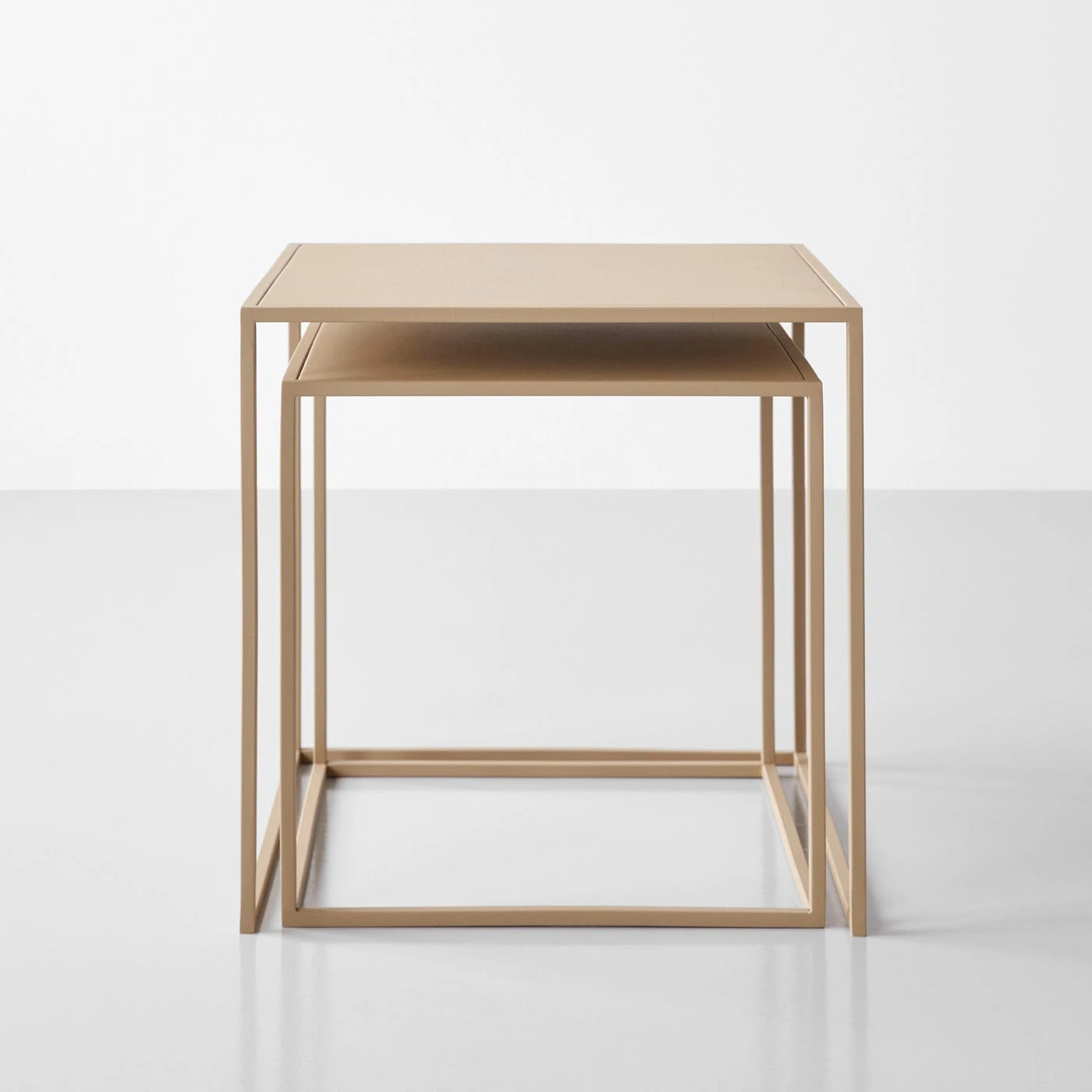 Simple and striking, these nesting tables enhance any room. Nestle them up alongside a beloved reading chair to hold your morning coffee. Place a set on either side of the bed for a modern twist on a nightstand. Or stretch them out in front of the sofa for a versatile coffee table. The powder-coated steel top is durable and practical — these nesting tables embody unmatched usability and effortless style. With a natural sand finish, these pieces are a neutral way to complete your living space.