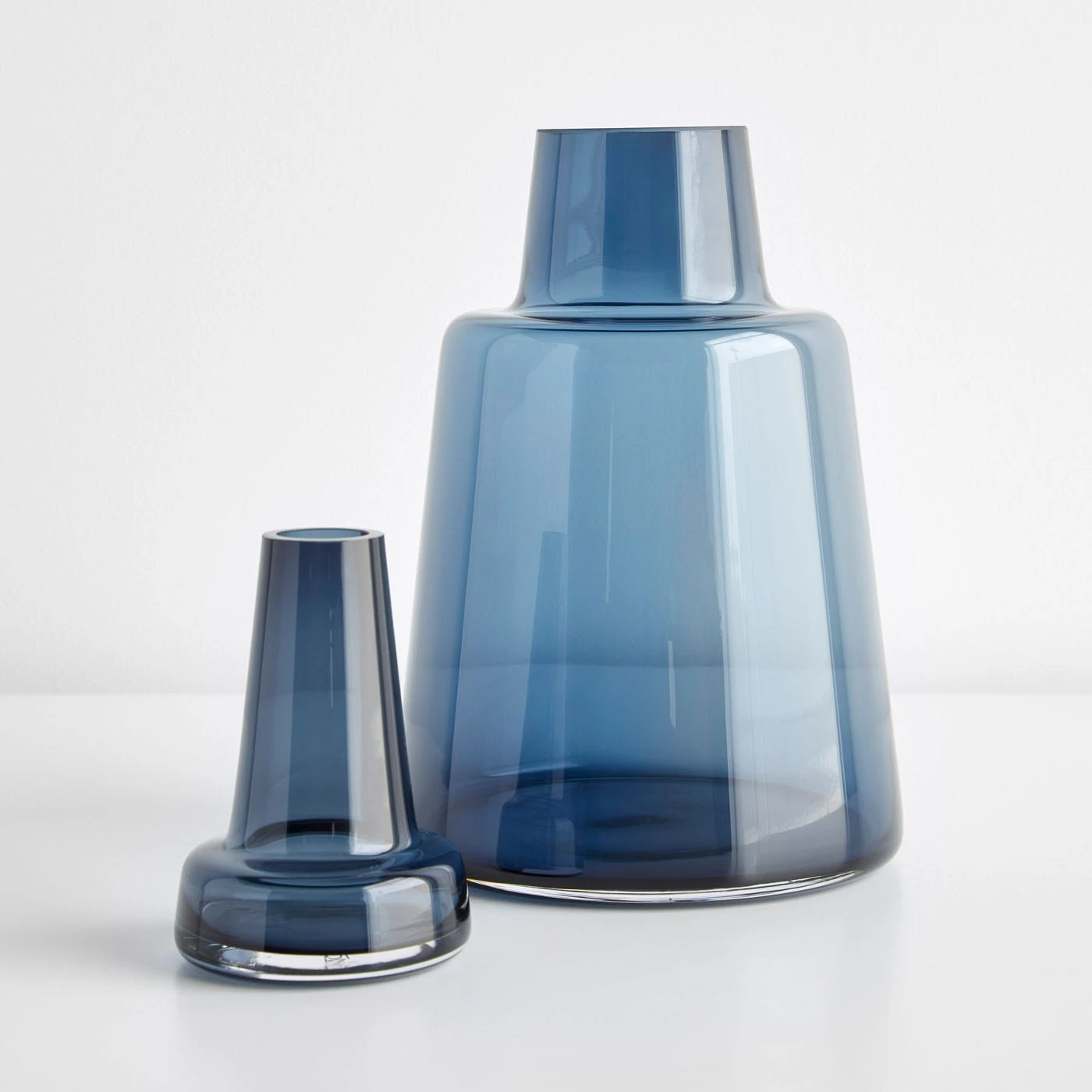Sculptural and stunning, the Flora Dark Blue Vase brings just the right amount of color to your modern space. In collaboration with Holmegaard and designed by Louise Campbell, a Danish designer known for creating functional works of art, this vase accomplishes that. It’s multi-purpose and can serve as a vessel for beautiful flowers or greenery, but looks just as good unadorned. Create an impressive display by arranging different sizes and shades of the Flora Vase together. The regal, slim neck of this small vase calls out for a single long-stem flower.