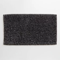 A soft and absorbent bath mat that looks as good as it feels. Mostly black with flecks of silvery white sprinkled throughout, this dark bath mat adds depth and drama to your bathroom. The mat feels plush and luxurious underfoot thanks to the twisted cotton loop design. Made in Portugal, it’s thick and sturdy and coordinates well with a variety of our bathroom towels and linens.
