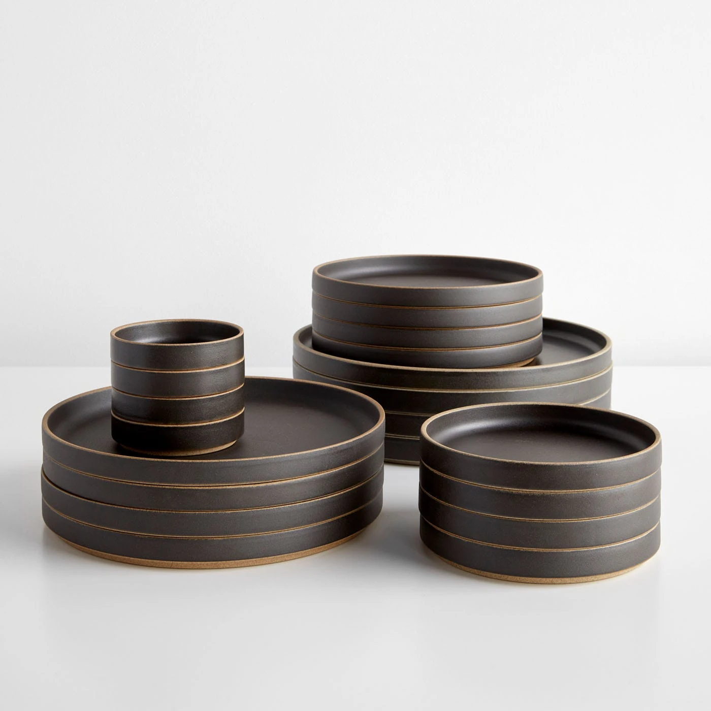 Timeless and versatile, this plate tells a story. For nearly 400 years, artisans in the Hasami district of Japan have been perfecting this special type of pottery making. This plate is made from natural Amakusa pottery stones and mixed with clay to create a durable and distinctive design. This plate coordinates with other pieces in the Hasami collection and can even be used as a lid for the matching bowls. It’s also stackable — making serving easy and maximizing your storage space. The black matte finish shows off the beauty of the Hasami technique, leaving a bit of the raw clay edge exposed for contrast. Use this plate to serve from or as a dinner plate.