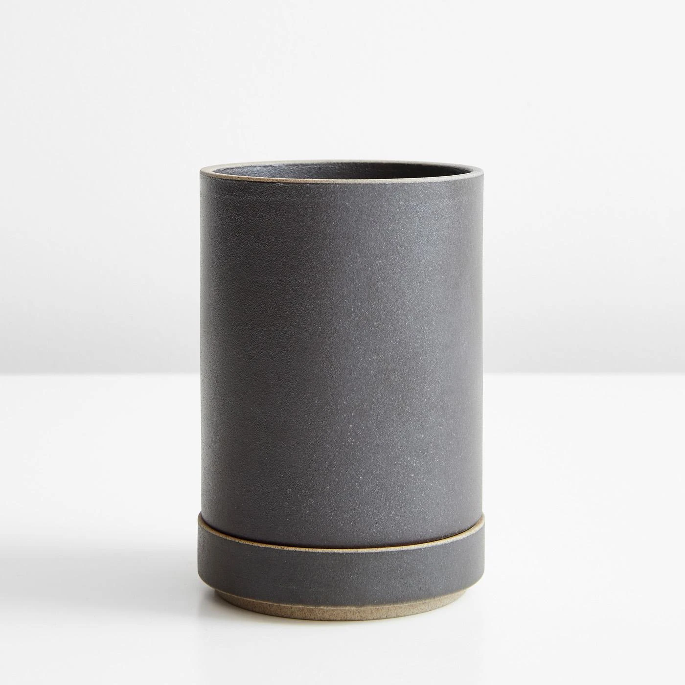 For almost 400 years Japanese artisans in the Hasami district have been making pottery such as this. Takuhiro Shinomoto designed Hasami Porcelain to integrate modern tableware with the same organic quality produced by traditional Japanese manufacturing techniques. This compact black planter is just the right size for a gift. Plant a little bonsai tree and give one away, or treat yourself to good design. Includes drainage hole and saucer.
