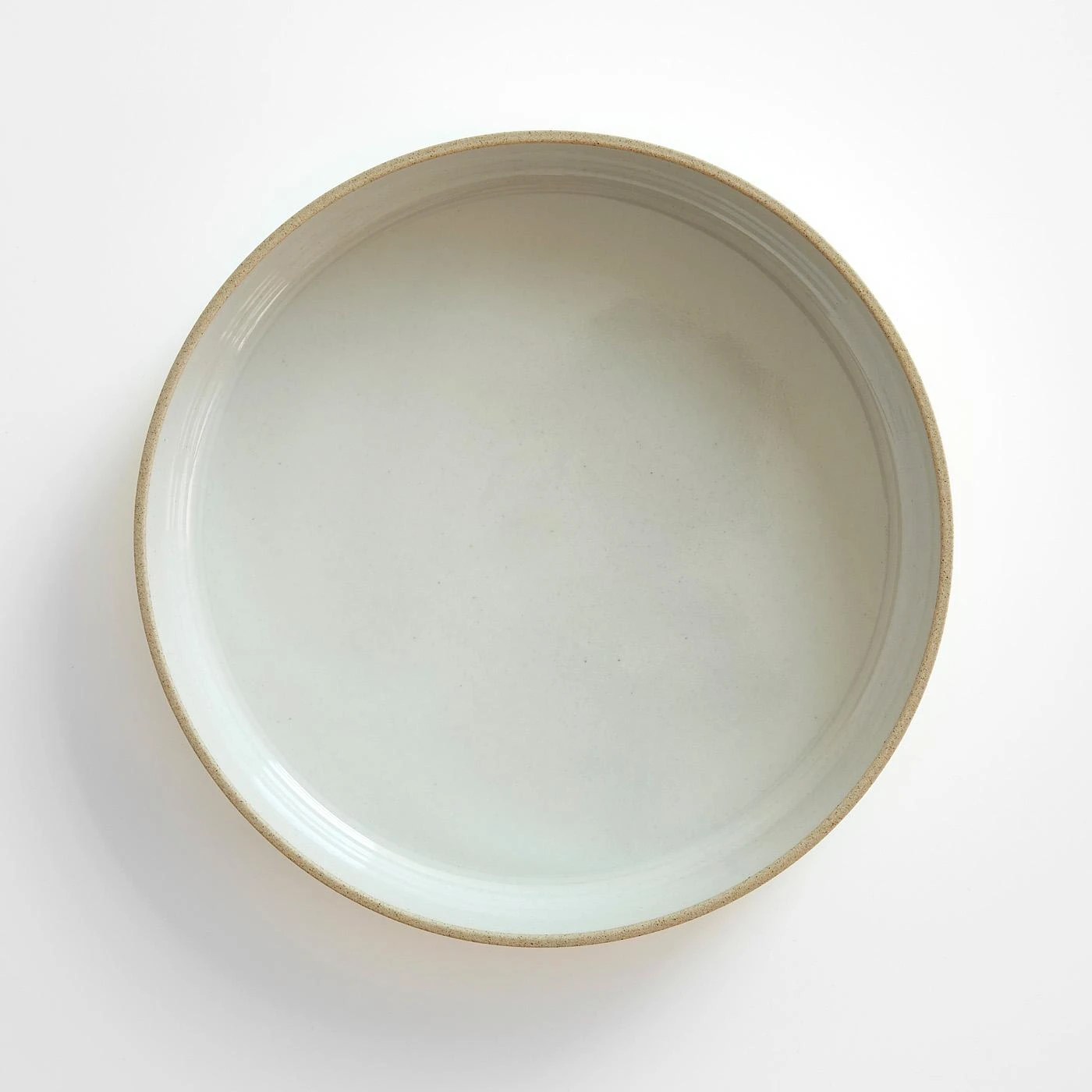 - Porcelain with a high gloss glaze and unglazed raw porcelain rim and bottom.
