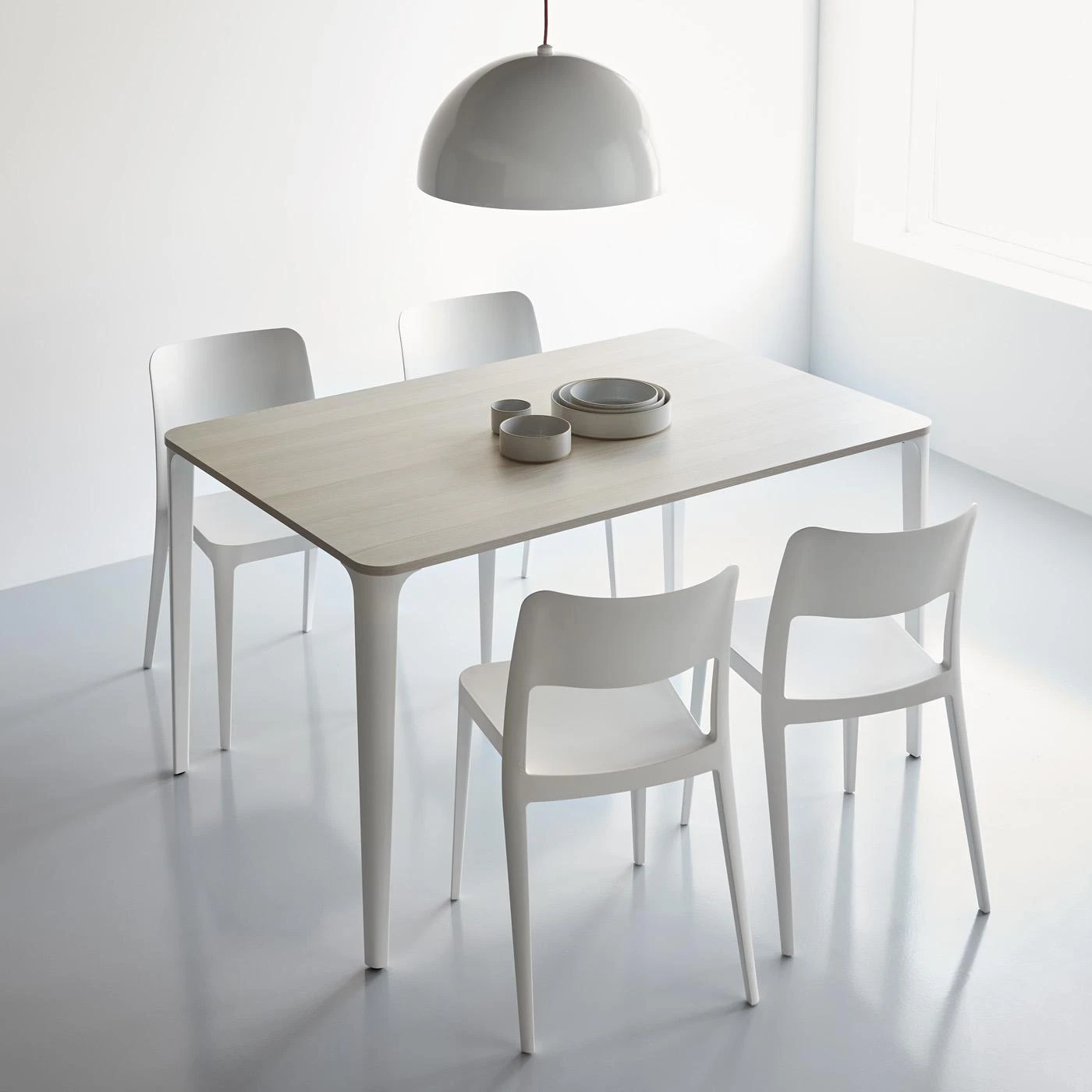 - Porcelain with a high gloss glaze and unglazed raw porcelain rim and bottom.