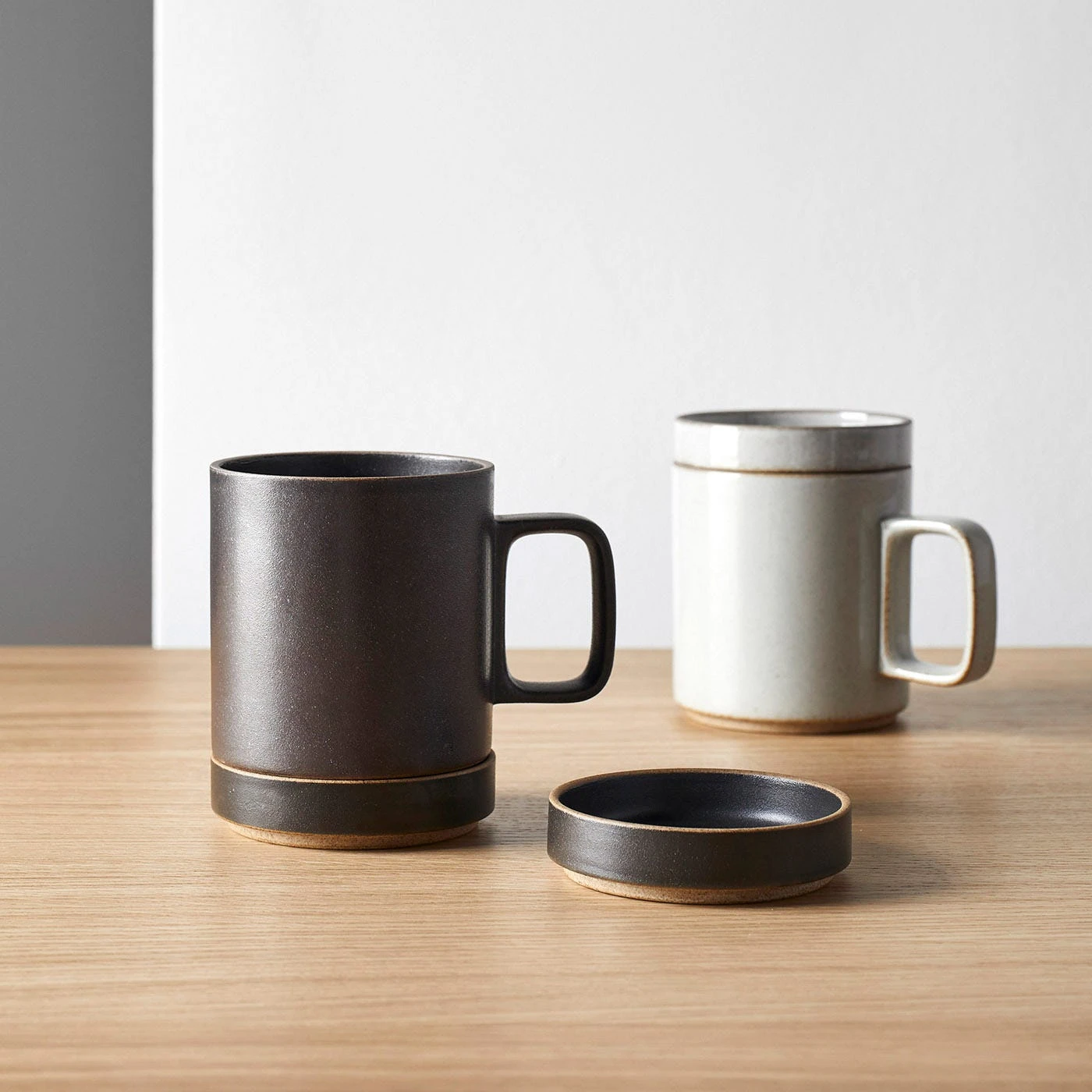 - Porcelain with a high gloss glaze and unglazed raw porcelain rim and bottom.