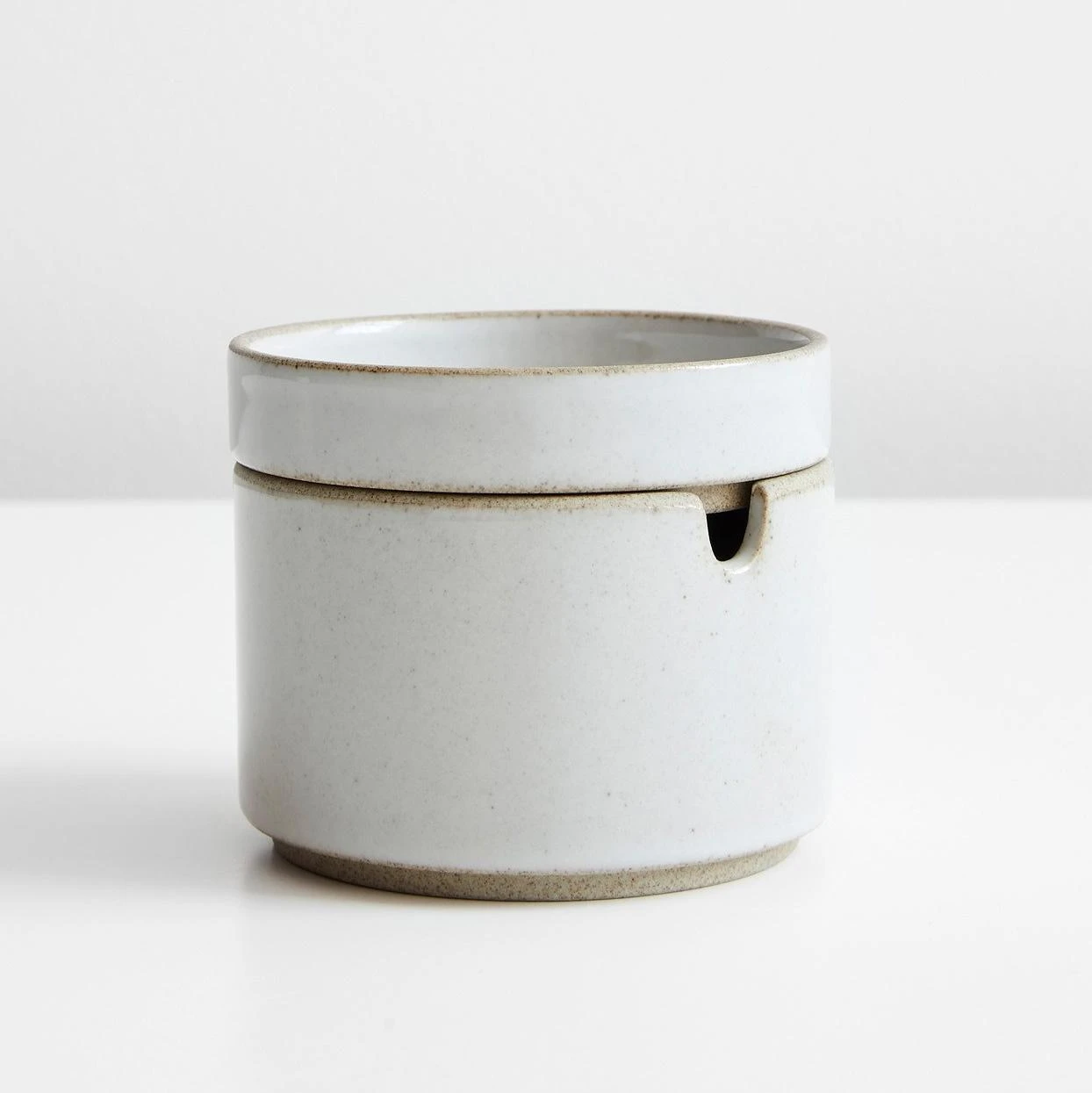 Simple and unadorned, the clean lines of this gloss gray sugar bowl recall Japan’s traditional forms. In fact, for almost 400 years Japanese artisans in the Hasami district have been making pottery such as this. The tradition carries through with this modern and simple design that can be stacked with creamer for storage. Pair it with the saucer for a lid.