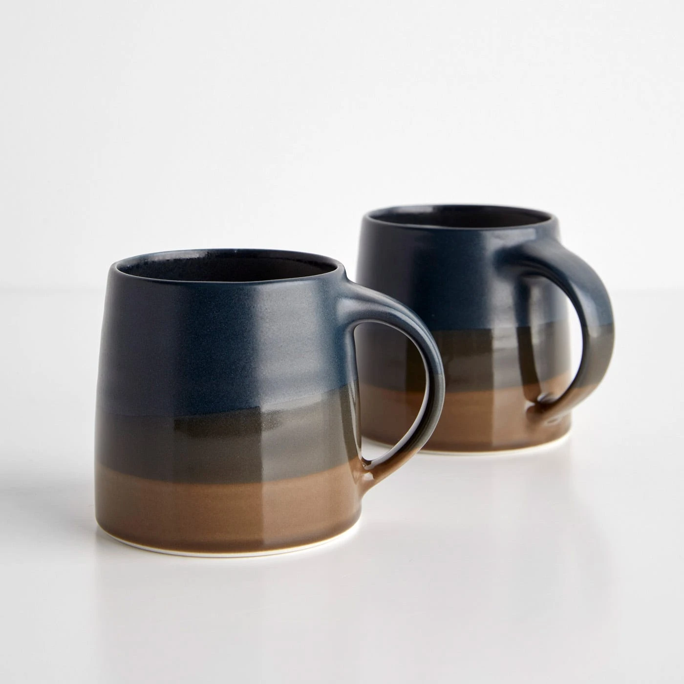 The Horizon Black and Brown Coffee Mug functions like a mug but looks like a beautiful art piece. Skillfully crafted from a single slab of clay, the handle rises from the curved surface, creating a satisfying grip when held. This is because the handle was pulled from the body of the mug, rather than attached separately like most mugs, creating a truly sculptural drinking vessel. This mug features a contrasting satin glaze on the top half and high-gloss glaze on the bottom half, plus it’s dishwasher and microwave safe too. Your morning coffee and afternoon tea have never looked so good.