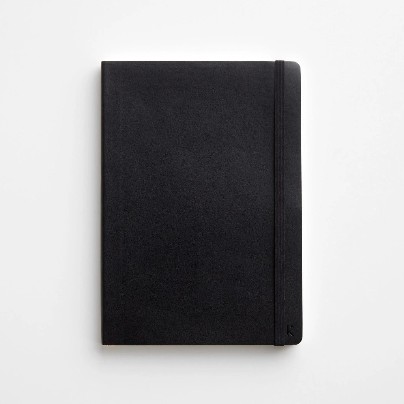 Compose notes or drawings on the Karst Stone Paper Black Softcover Notebook’s ultra-smooth pages. Featuring waterproof, tear-resistant paper made from 100% recycled stone, this black journal’s sheets enable friction-free sketching. The thread-bound design can be laid flat, and the dotted grid pages help with spacing and alignment. Mark your place with the divider ribbon, store loose notes in the back pocket and wrap the elastic closure ribbon around the flexible vegan leather cover to secure. The premium look and feel of this eco-friendly notebook make it a thoughtful gift.