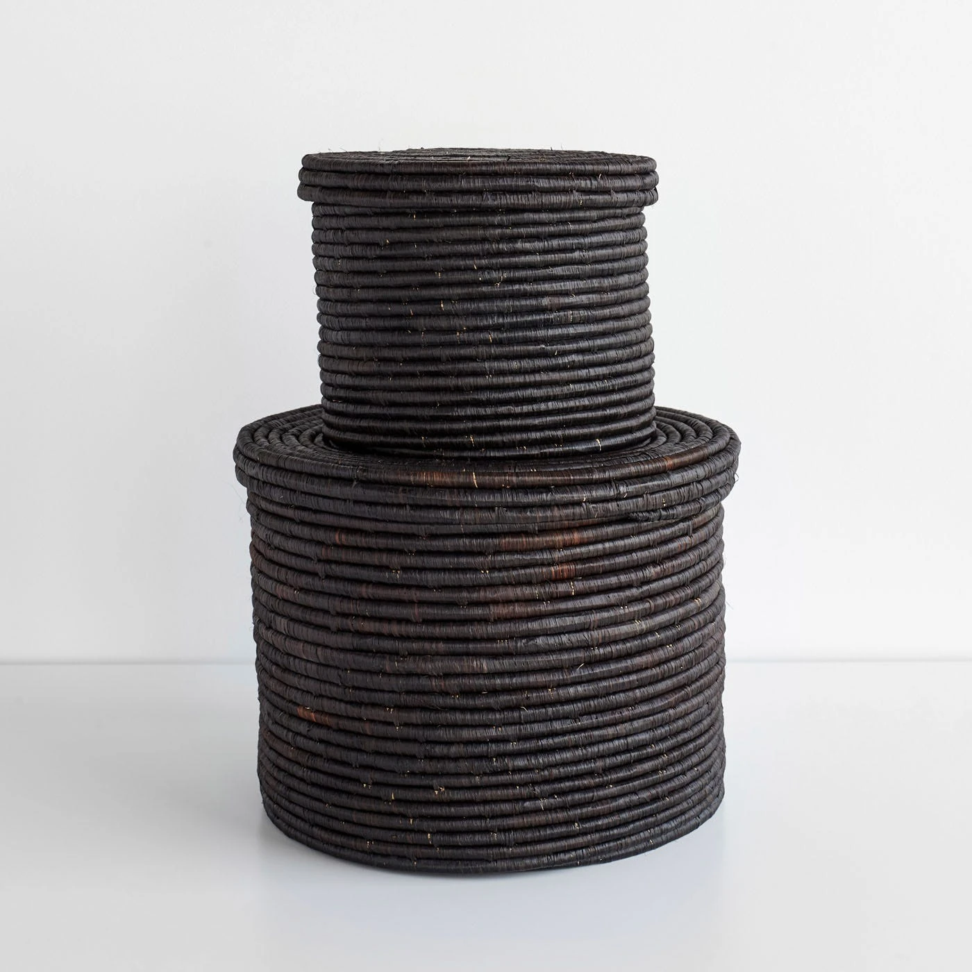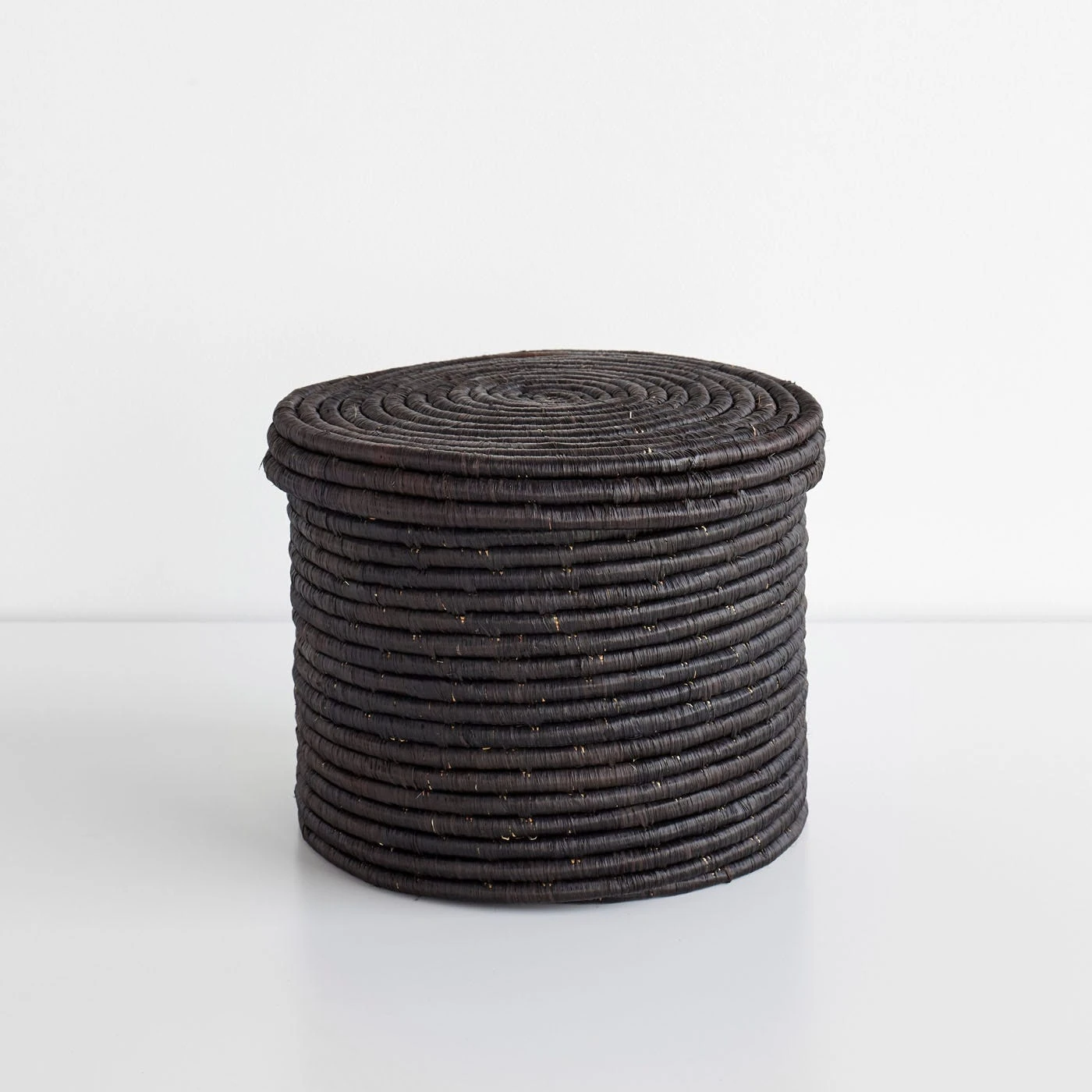 If only all storage options looked this good! This black lidded basket is handmade in small communities in Uganda, so every purchase empowers women with resources to support themselves and their families. It’s constructed from all-natural and sustainably sourced raffia palm leaves and banana leaf fibers. Each storage basket is one of a kind and varies slightly in size and color due to its handwoven origin. Small toys and games have a smart new home in this black storage basket that looks great anywhere.
