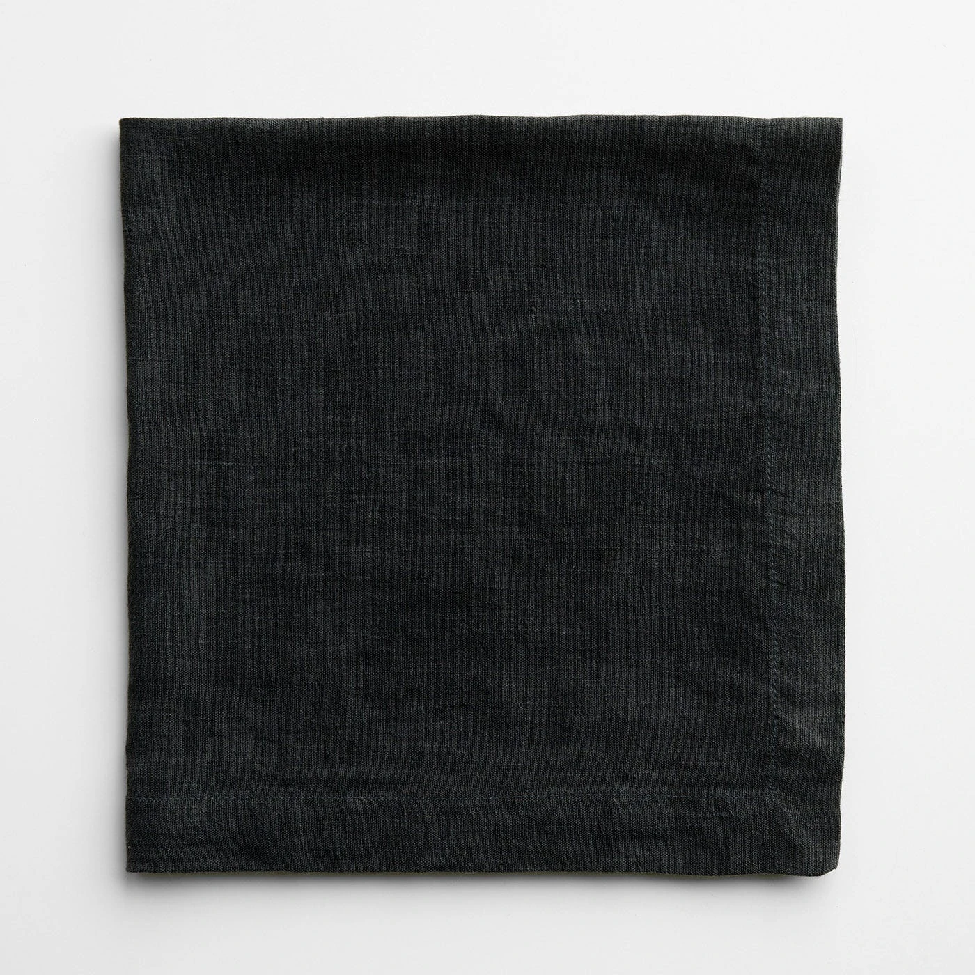 Crafted in Portugal from 100% European flax linen, this black cloth napkin is free from harmful chemicals and certified to the Oeko-Tex® Standard 100. Each piece is garment washed, giving a soft and relaxed quality upon first use. Subtle details like mitered corners and a double-turned hem add special touches to this dark-hued neutral napkin. Finish off a moody and modern table setting with the Linen Black Napkin, suitable for celebrations and every night dinners alike.