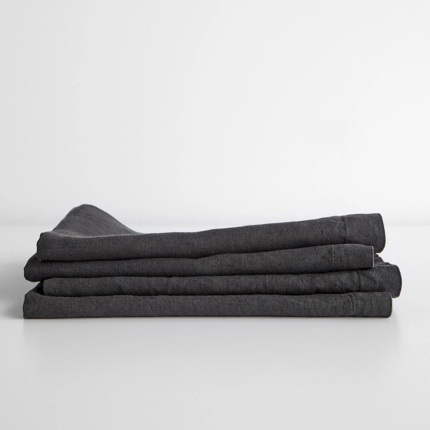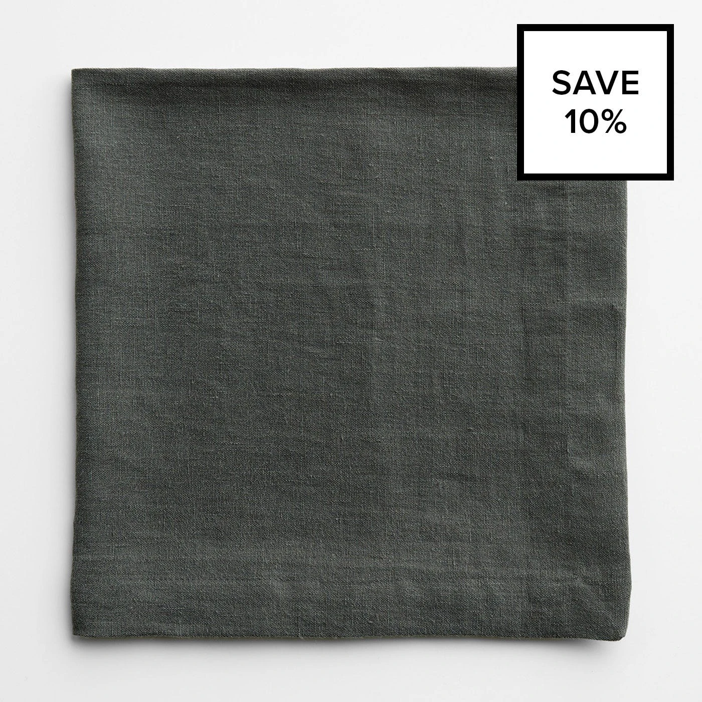 Crafted in Portugal from 100% European flax linen, this dark gray cloth napkin is free from harmful chemicals and certified to the Oeko-Tex® Standard 100. Each piece is garment washed, giving a soft and relaxed quality upon first use. Subtle details like mitered corners and a double-turned hem add special touches to this neutral napkin. Finish off a neutrally modern table setting with the Linen Graphite Napkin, suitable for celebrations and every night dinners alike.