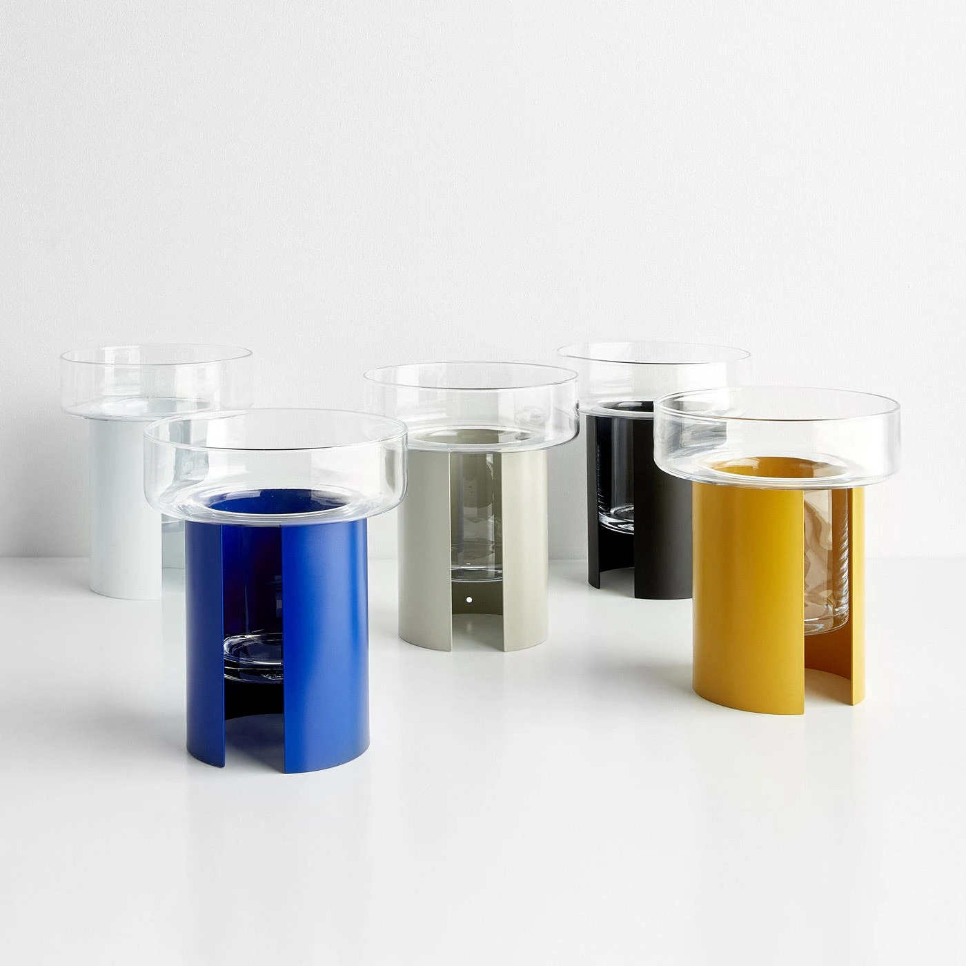 Bring the beauty of nature indoors with the LSA International Terrazza Cobalt Blue Planter. Its modern, sculptural silhouette includes a glass bowl which nestles into a sturdy, powder-coated steel base. This bright blue planter features an open channel to expose plant roots to a controlled amount of light. The mouthblown glass bowl on top has a wider diameter which provides plenty of space for growing indoor bulbs, herbs and plants. Place on a desk, tabletop or floor to display lush greenery and colorful blooms.