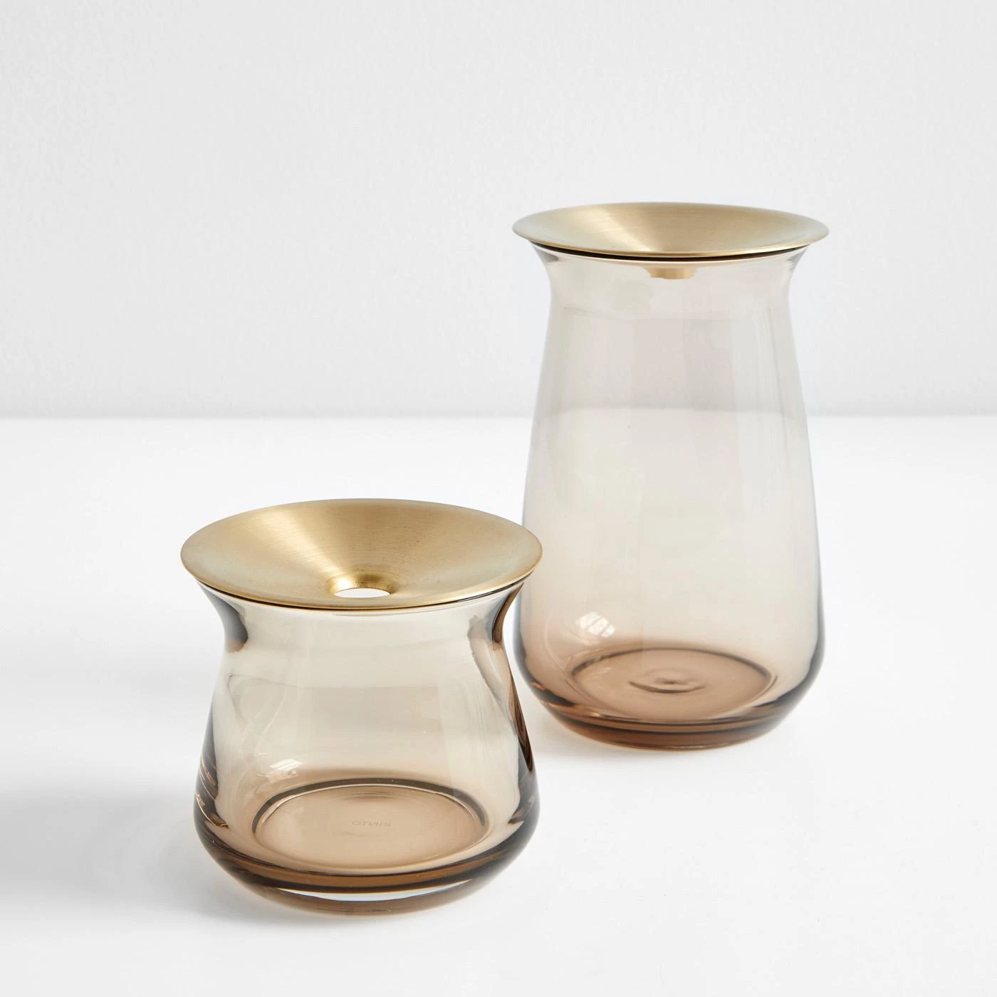 - Soda-lime glass vase, brass lid.