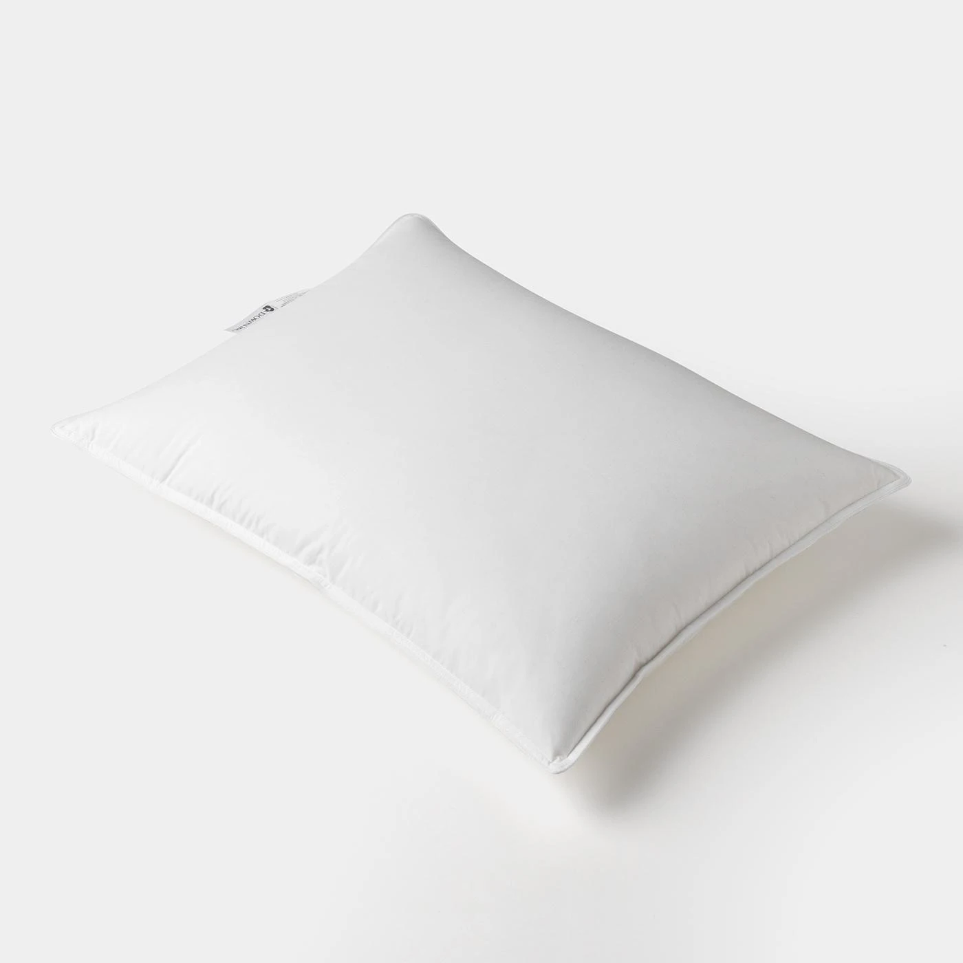 Filled with premium white duck down at a medium level of firmness, this bed pillow is made with a 100% cotton, down-proof fabric shell and a double-needle stitched construction. The craftsmanship and quality materials that go into making this pillow will keep you sleeping soundly for many years to come. This option fits Standard-sized pillowcases.