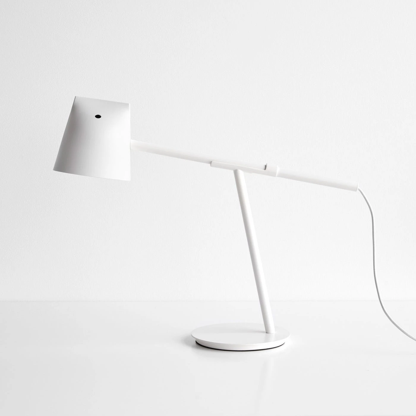 Daniel Debiasi and Federico Sandri’s spin on the classic office desk lamp. Streamlined, yet artistic, the design is balanced for an airy, light effect. This office lamp presents an easily adjustable LED light with three settings for you to find your ideal light level, thanks to the unique dispersion lens within the lamp head. It’s constructed from sturdy powder-coated steel and plastic, and features a textile cord. The Momento White Table Lamp transforms your space with simplicity and soft, graceful lines.