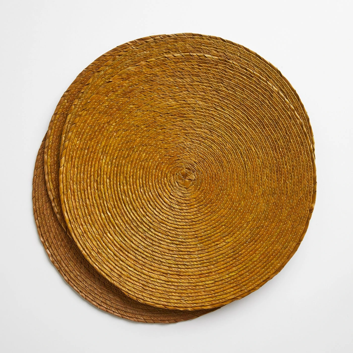 In Spanish, “onda” means wave or ripple. The circles of hand-braided palm leaves that make up the Onda Placemats resemble the ripples from a drop of water. Created by artisans in Mexico who have perfected their craft by learning the traditional techniques passed down from previous generations, these round placemats show off a bit of that history and craftsmanship. The rich shade of the Onda Ochre Placemat adds a warm, neutral color and textured layer to your table.