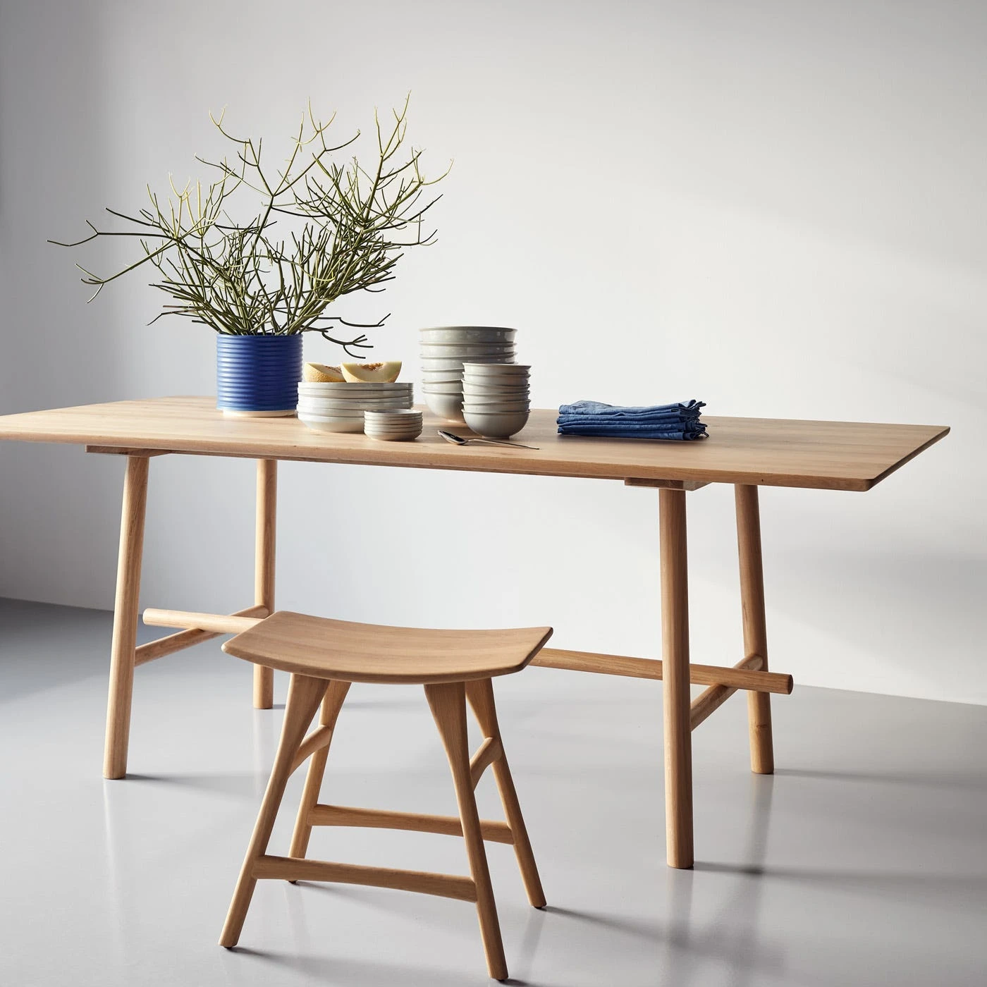 A seat with a different perspective. This simple, clean-lined stool is an alternative to a chair for your dining table or desk. Use it to streamline your scheme while infusing a bit of personality, which comes through in its slightly curved lines and A-line form. In natural wood, which proves ever versatile and also pairs with our natural oak tables. It’s also great for extra seating in small spaces.