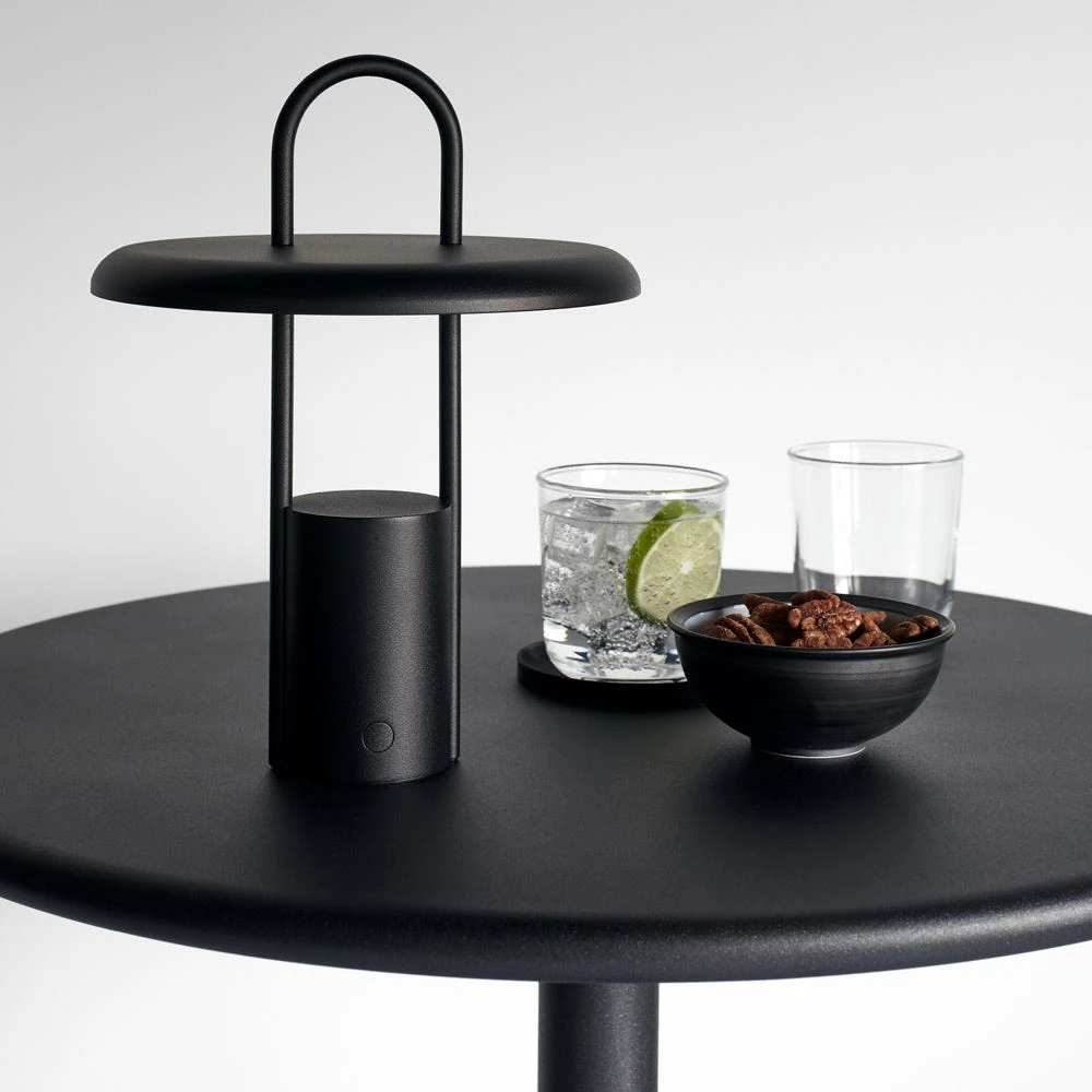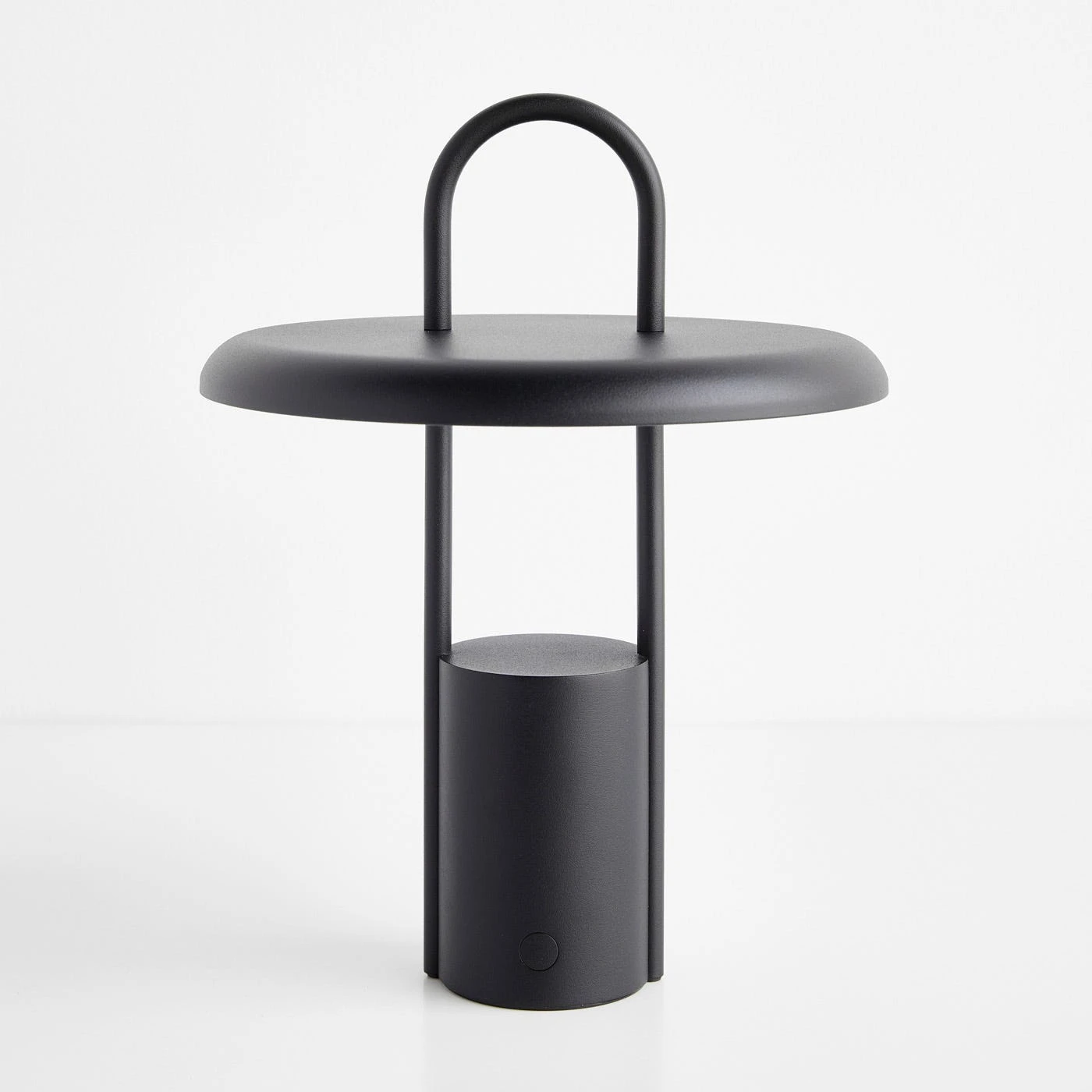 The Pier Black Portable Lamp combines nautical tradition with modern convenience. Offering a fresh take on the classic ship’s lamp, this indoor/outdoor light features an updated silhouette with a slim integrated handle and neutral black tone. The downward cast of the warm light creates an inviting atmosphere. This wireless LED lamp can be charged with the included USB cable and set to three varying levels of illumination using a simple touch on the value at the base.