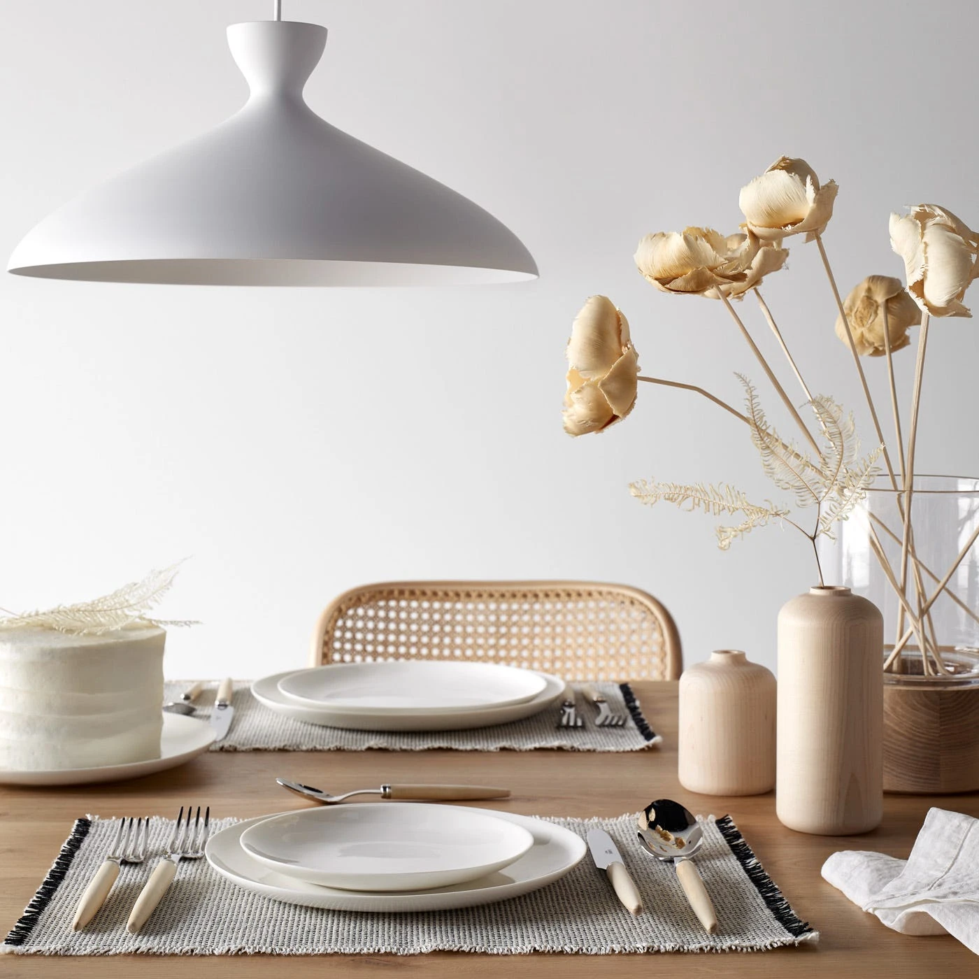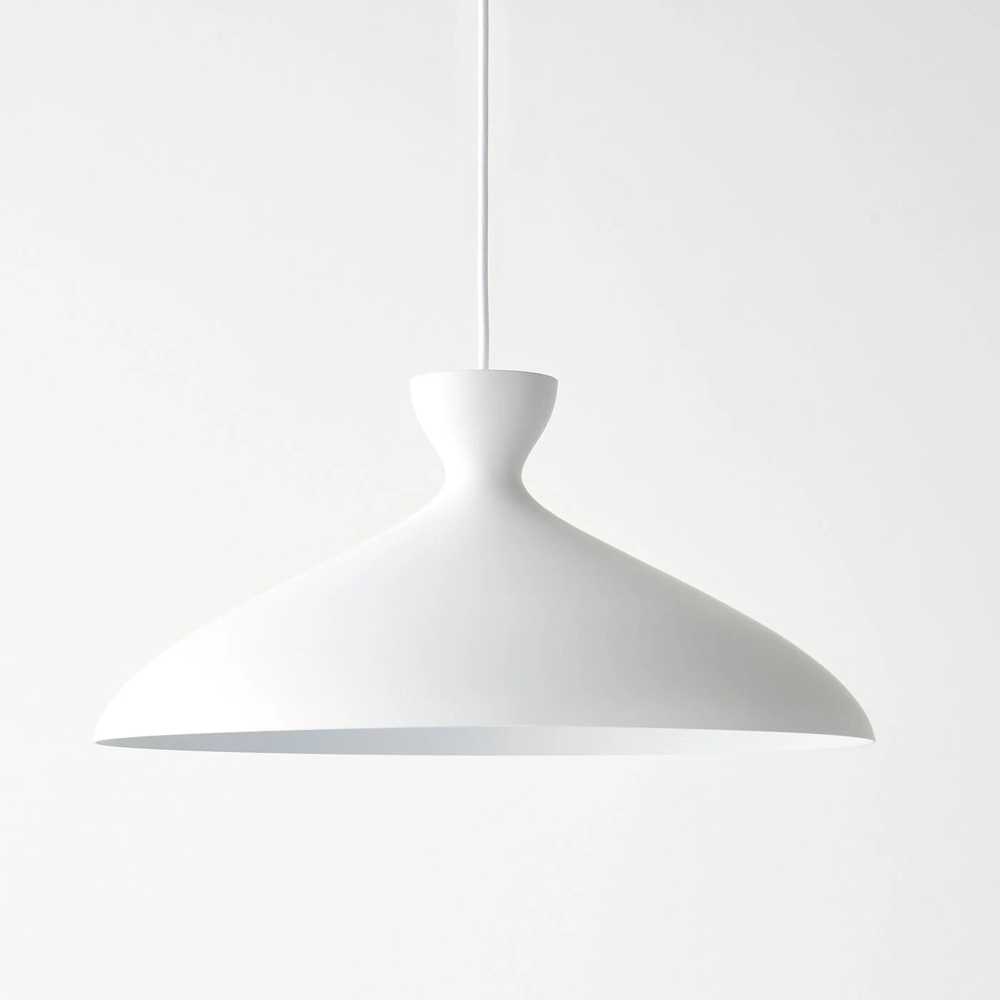 Evenings at home are now more welcoming than ever with this matte aluminum pendant light. The gentle, graceful lines of this pendant light encourage you to unwind and enjoy the moment. Go ahead and flip that switch, this lamp diffuses your space in a wonderful wash of light. This German-made white pendant lamp features a spun aluminum shade and plastic ceiling canopy. This clean white light casts a warm illumination throughout your space.