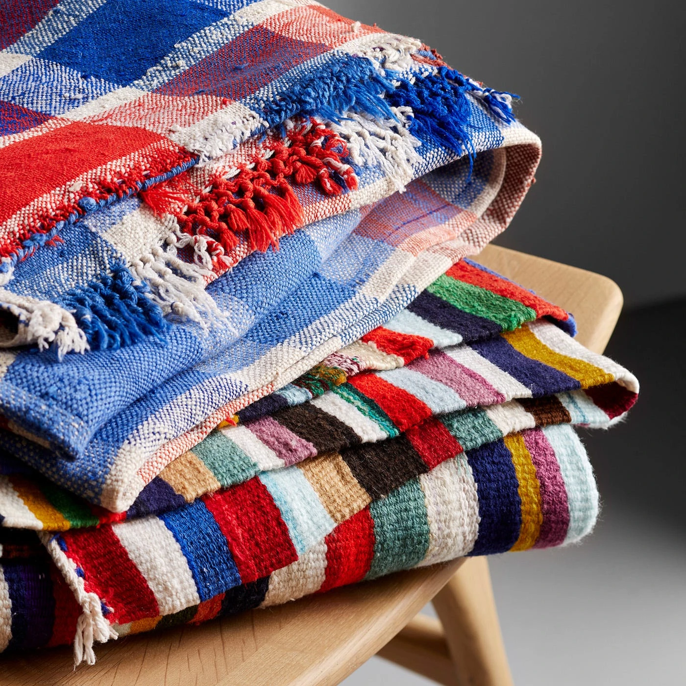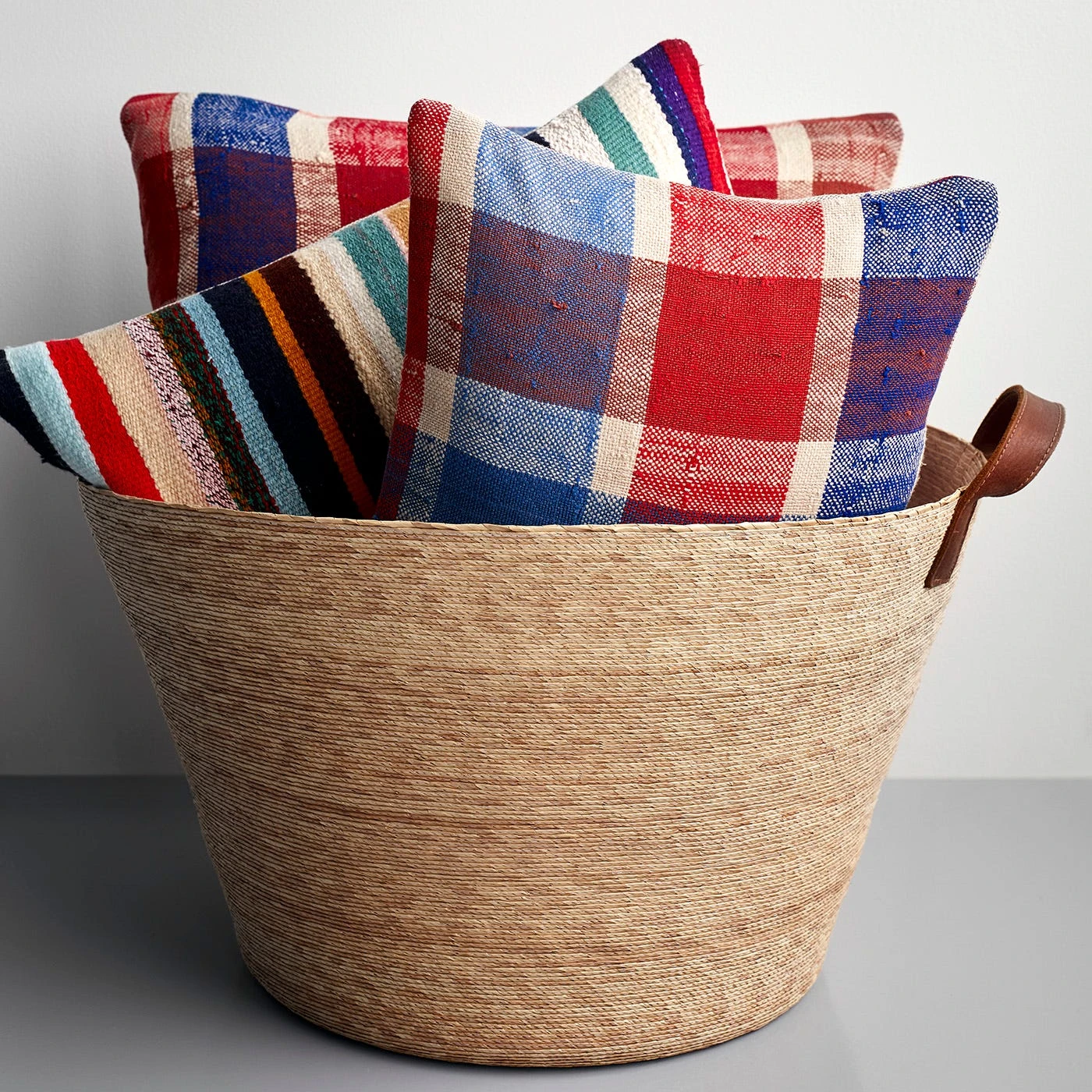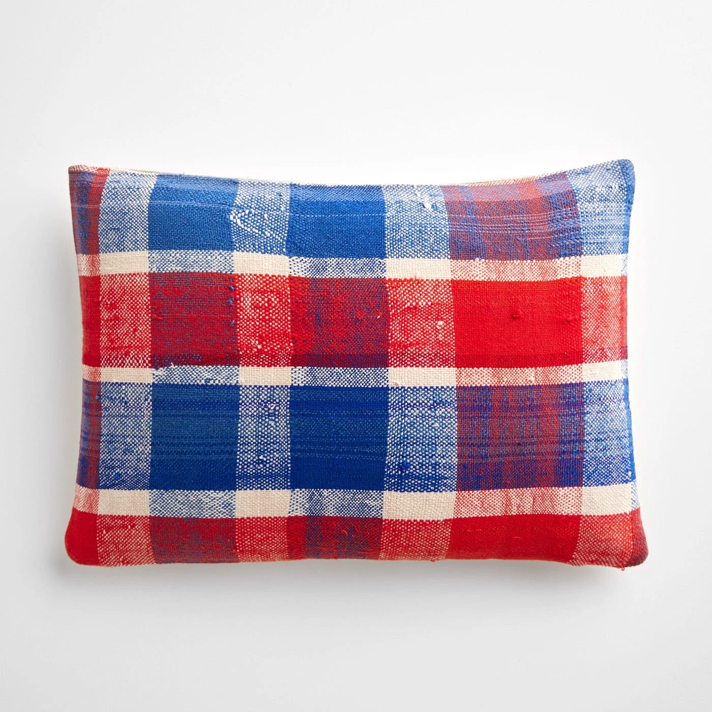 The 12″ x 18″ Rebia Plaid Throw Pillow Cover instantly infuses homes with a splash of bold color with its vibrant blue and red plaid pattern. These covers are made from vintage Moroccan fabrics created with weaving techniques passed down through generations. The beautifully handcrafted fabrics are sourced from from the Middle Atlas mountain range region of Morocco, then carefully cut to create individual, one-of-a-kind pillow covers. The back features a heavier linen and cotton blend fabric in a neutral beige color. Simply slip your pillow of choice inside and close with the concealed zipper.