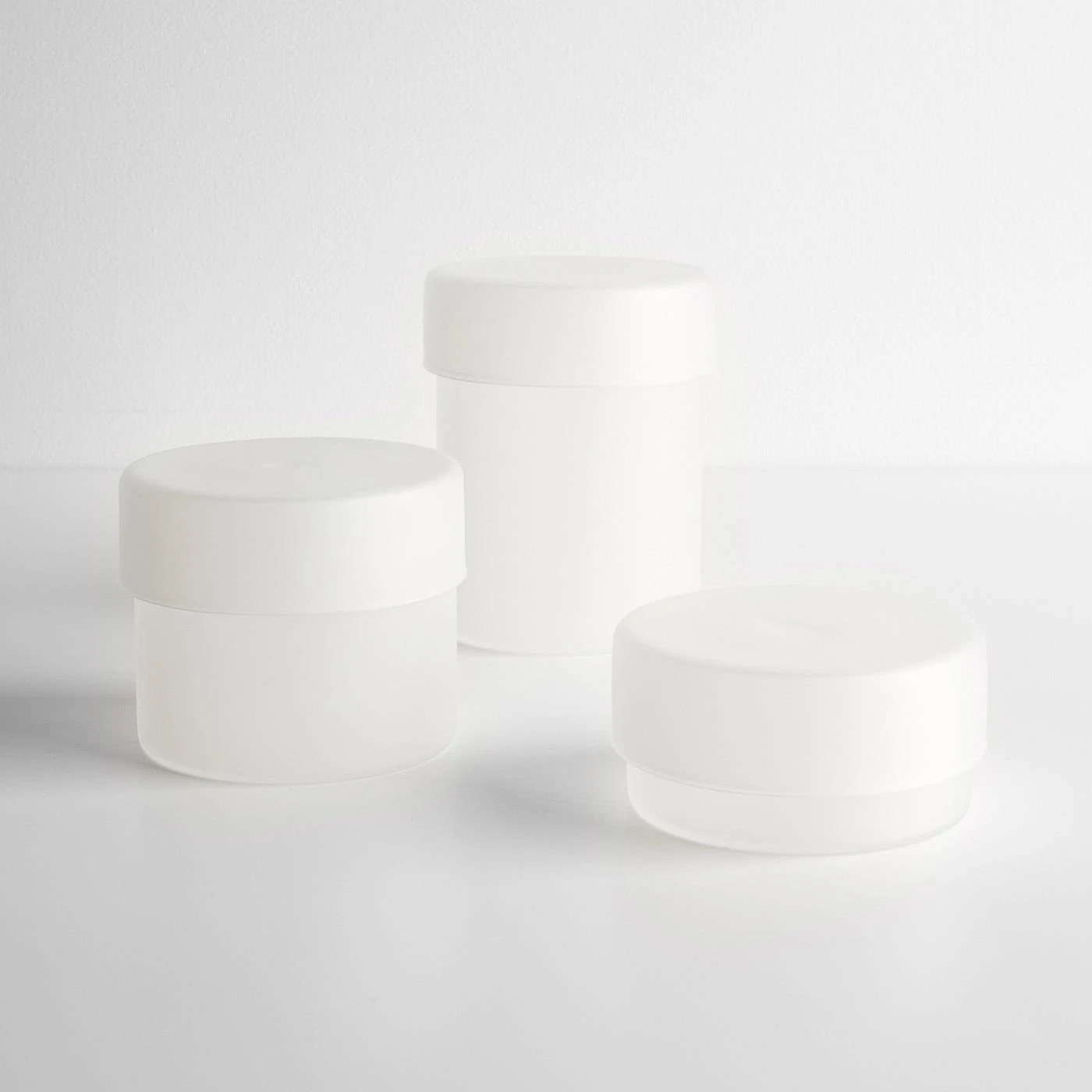 The Schale Frost Medium Glass Case streamlines home and office storage. The softly rounded edges and smooth glass add a sophisticated touch to a shelf, cabinet, pantry, desk or countertop. The frosted white translucent surface partially conceals the items inside, allowing only hints of the contents to show through. Standing just over 3.5″ tall and made from heat-resistant glass, this case is perfectly sized to store dry goods and food or used as two open containers for small items of all types.