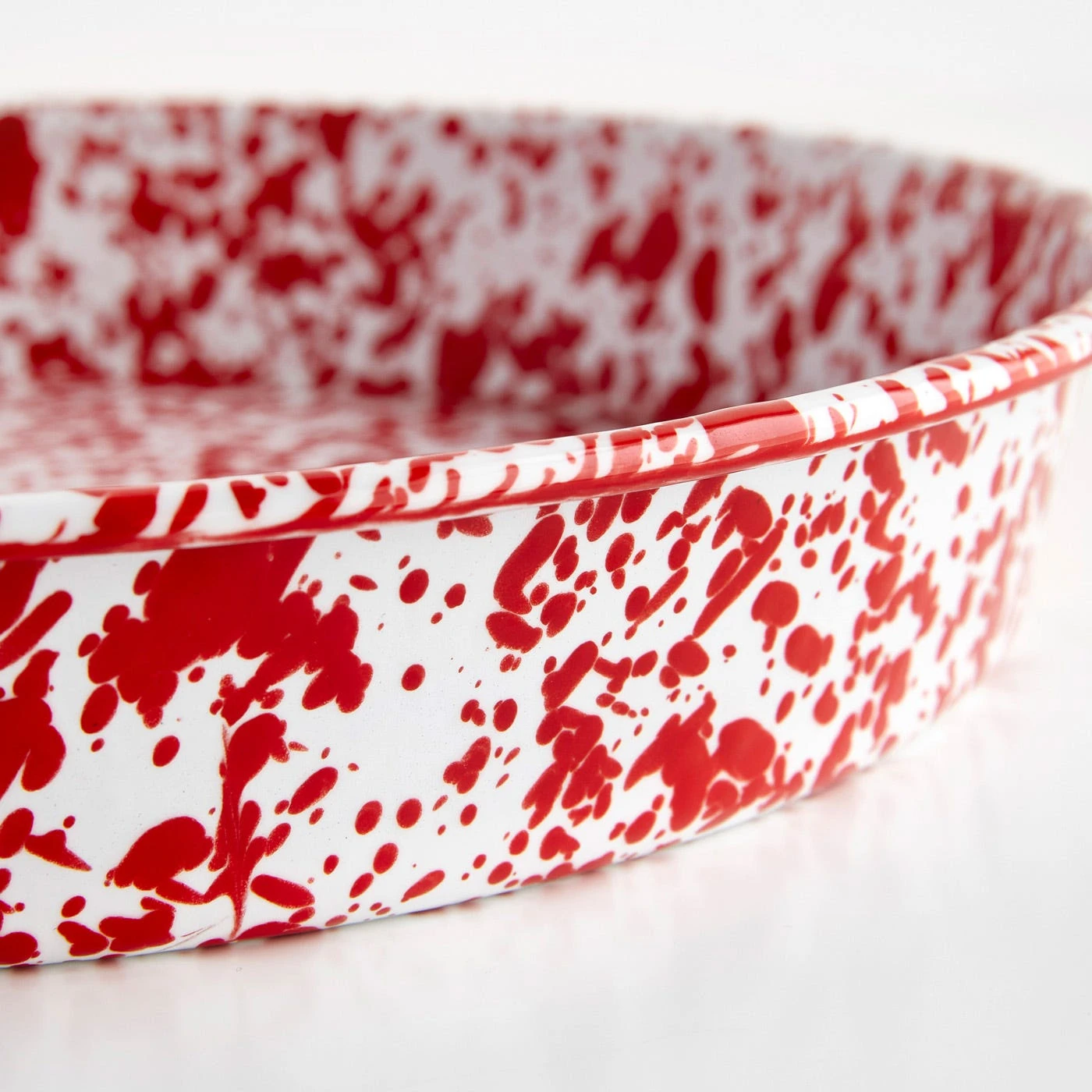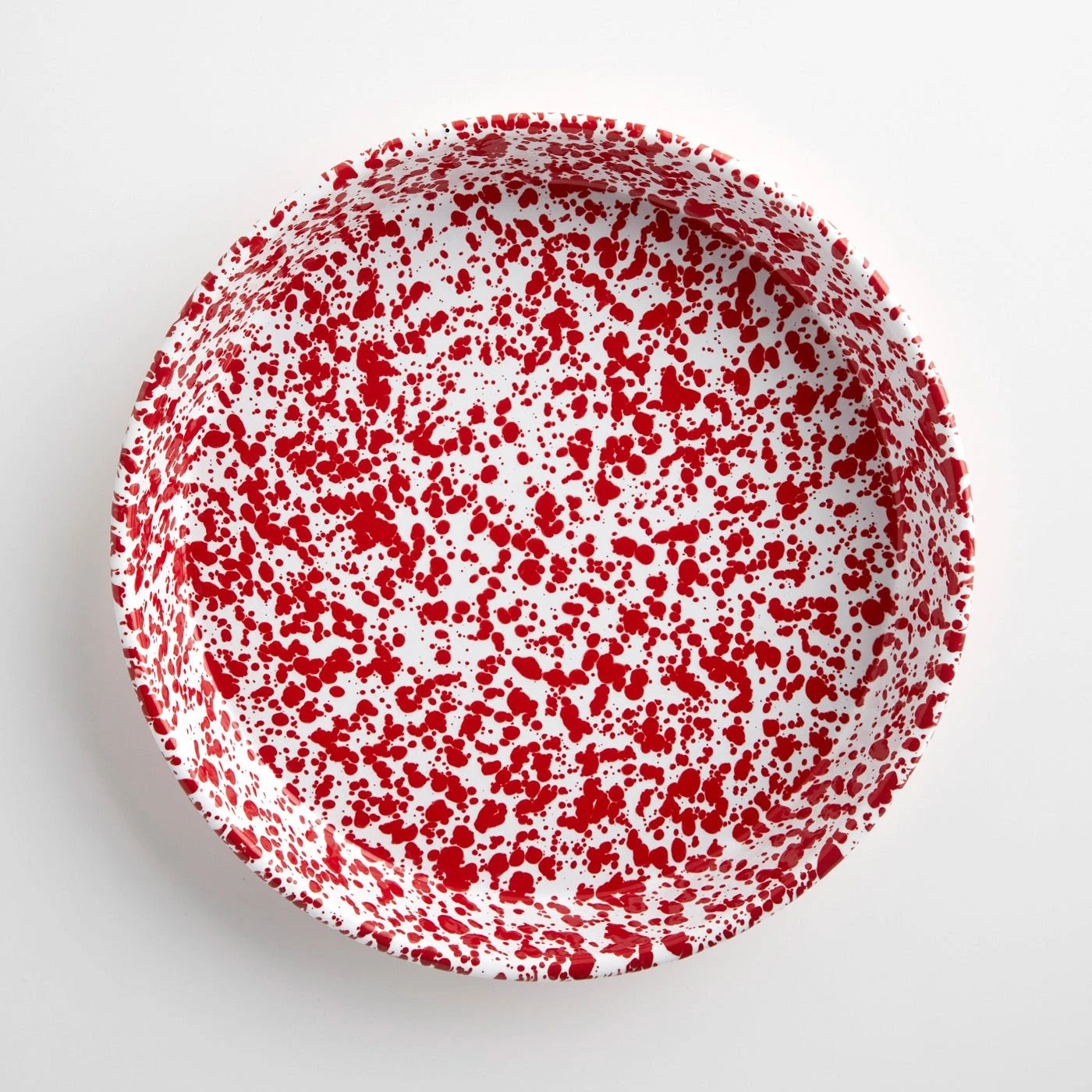 The Splatter Enamelware Deep Tray is time-tested and designed to last for generations. This porcelain-coated heavy-duty steel tray is from Crow Canyon, a Northern California-based company who has specialized in enamelware since 1977. Use it to carry drinks to your guests or transfer your meal from kitchen to table. This high-sided, speckled tray doubles as a pan that’s safe to use in the oven, on the grill or over the campfire. An array of crimson red dots hand-splattered by skilled artisans adds a lively touch and distinguishes this enamelware tray as a one-of-a-kind statement piece.