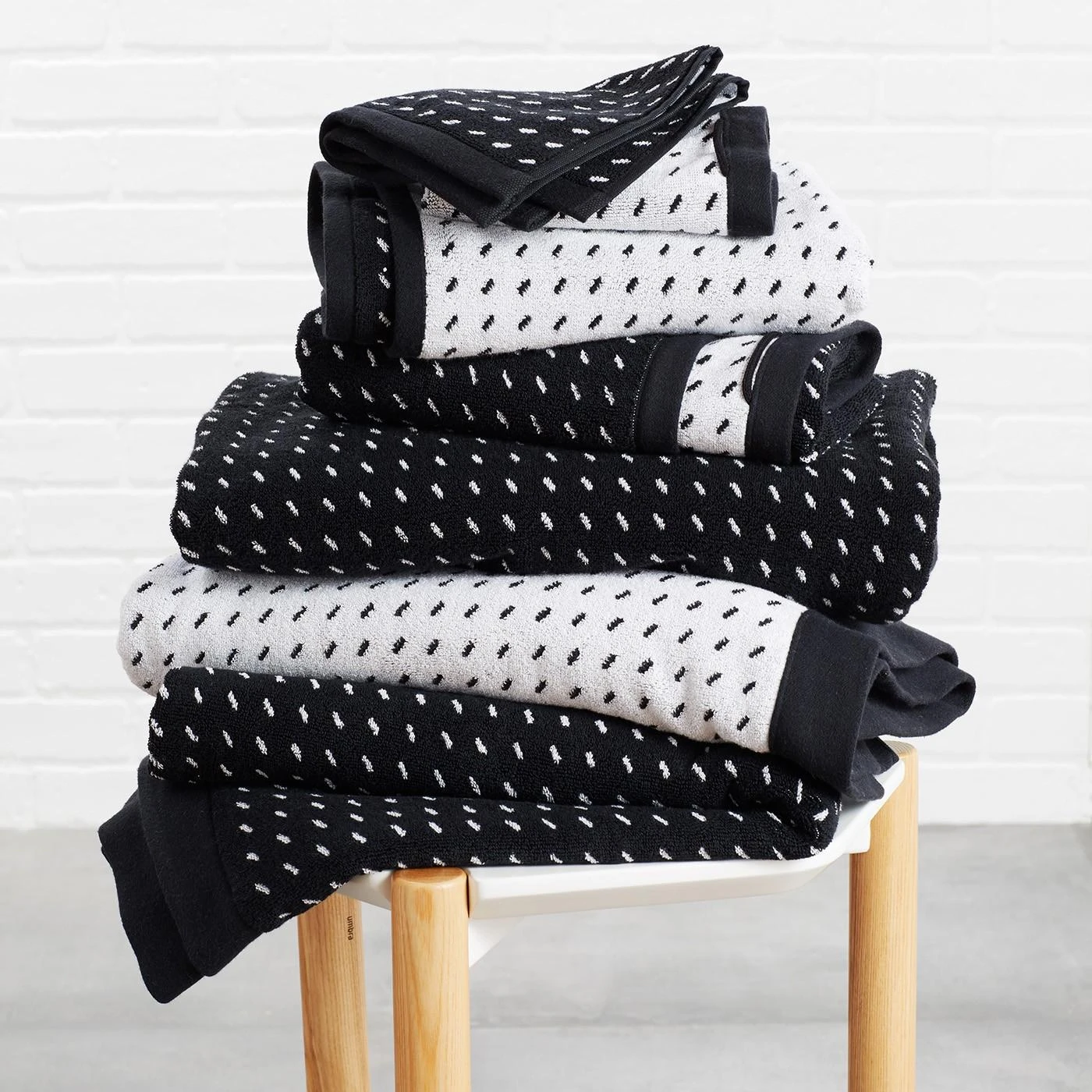 Bring a modern graphic statement into your bathroom with the Stitch Black + White Towel Bundle. Exclusive to Unison, the Stitch pattern was created by our founders in 2010 and has been integral to our identity ever since. Made in Portugal and 100% OEKO TEX® certified, these towels are as soft and absorbent as they are striking. Great for outfitting guest baths and vacation homes, or for creating your own cohesive bathroom, save with Unison Essential Bundles without compromising on design.