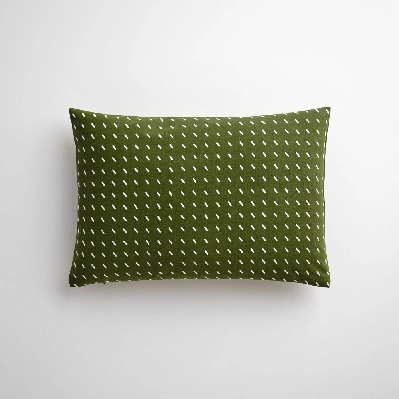 With its fresh, vibrant color and distinctive pattern, the Stitch Pine Throw Pillow Cover makes an instant impact on a sofa, chair or bed. This Unison-exclusive print was originally designed in 2010 and features hand-drawn diagonal dash marks which create a subtle sense of movement. The lush green rectangular pillow cover color contrasts beautifully with the crisp dashes. The pillow cover fabric is created at one of the few remaining fully operational, hand-printed fabric mills in the U.S. before being cut and sewn by a local sewing business. Made from a substantial 100% cotton sailcloth, the covers have a thick feel that is both durable and comfortable.