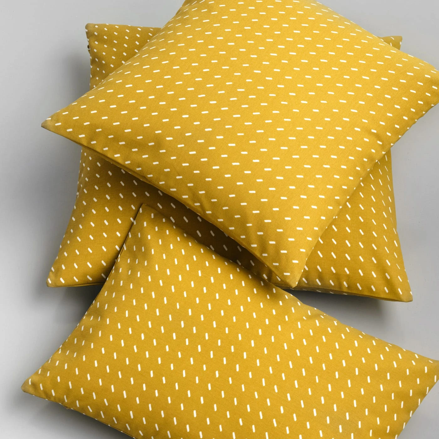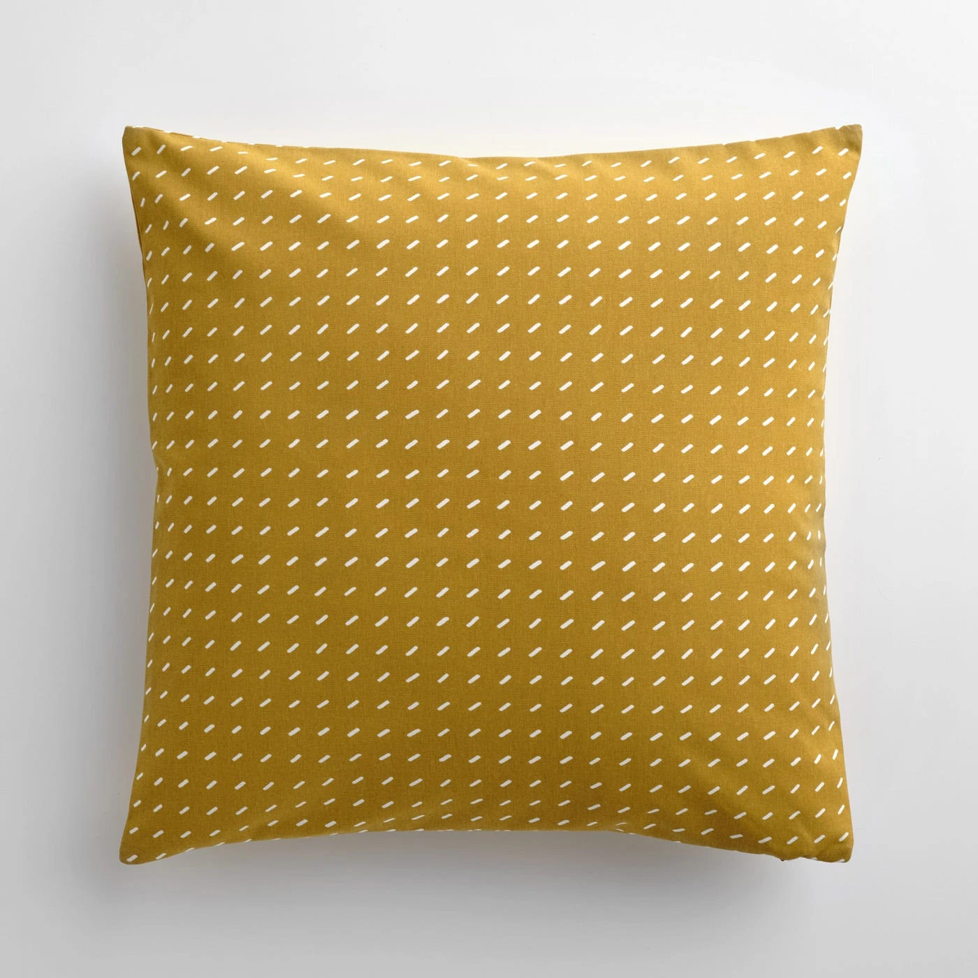 With its deep golden hue, the Stitch Yarrow Throw Pillow Cover makes a beautiful addition to a bed, chair or sofa. This extra-large square yellow pillow cover features a signature Unison print originally designed in 2010. The hand-drawn dash marks add subtle movement and texture on the 100% cotton sailcloth base. With a thick, substantial feel and excellent durability, this material is perfectly suited to such a timeless pattern. The pillow cover fabric is screen-printed by hand at a family-owned U.S. textile mill in operation since 1937, then finished with hidden zippers by a local Chicago sewing business.