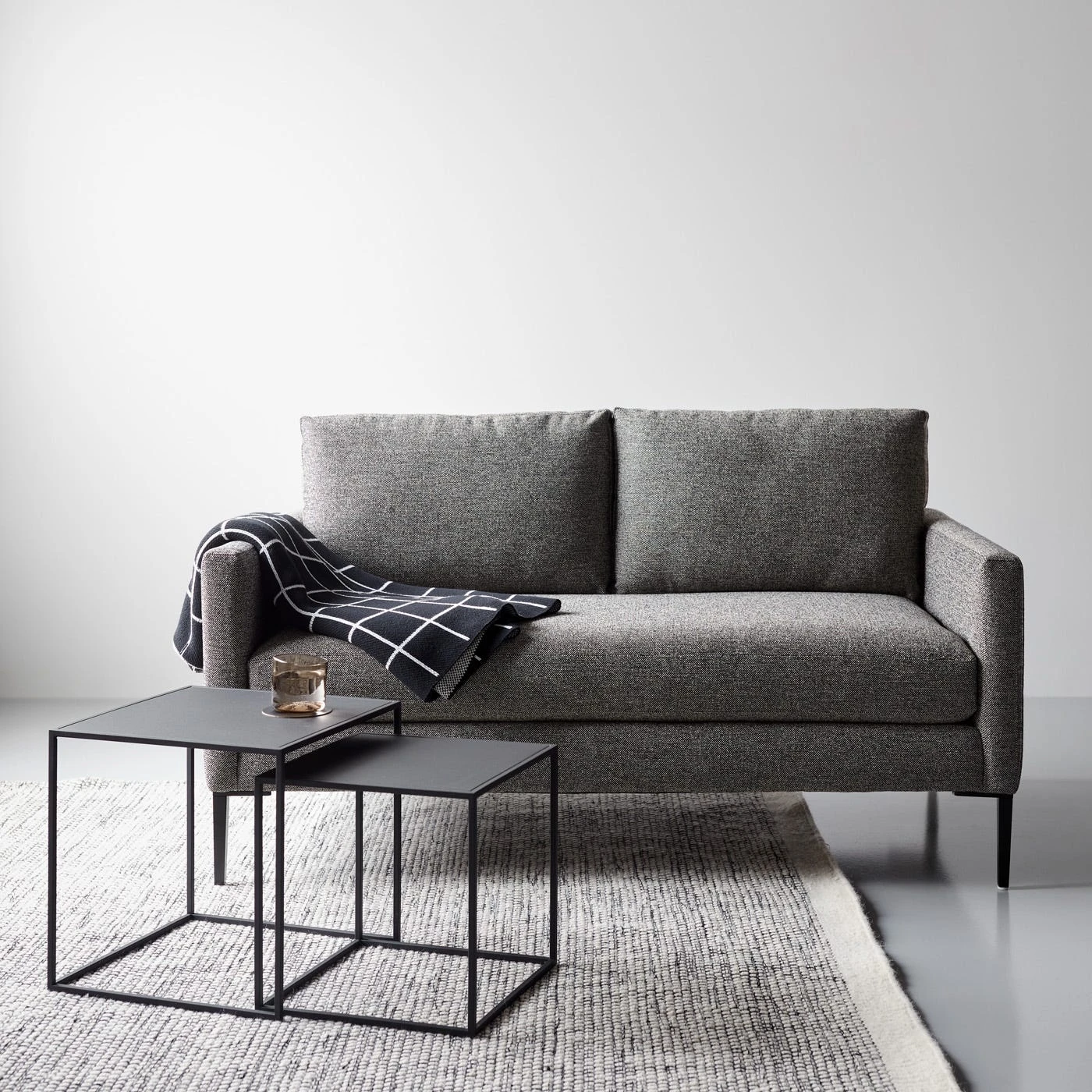 Sit back and relax with the classic, easy style of the Talman Tweed Black Loveseat. Its medium firmness and seat depth provide an inviting spot for one or two people to lounge. Supported by a kiln-dried solid maple wood frame and no-sag springs, it has the durability of a heftier sofa while sporting a slimmer silhouette. Tall, tapered metal legs offer lift off the floor, while a narrow front rail and track arms contribute to the tailored design. The black Donegal tweed fabric features an apparel-inspired look and feel that’s both sophisticated and inviting.