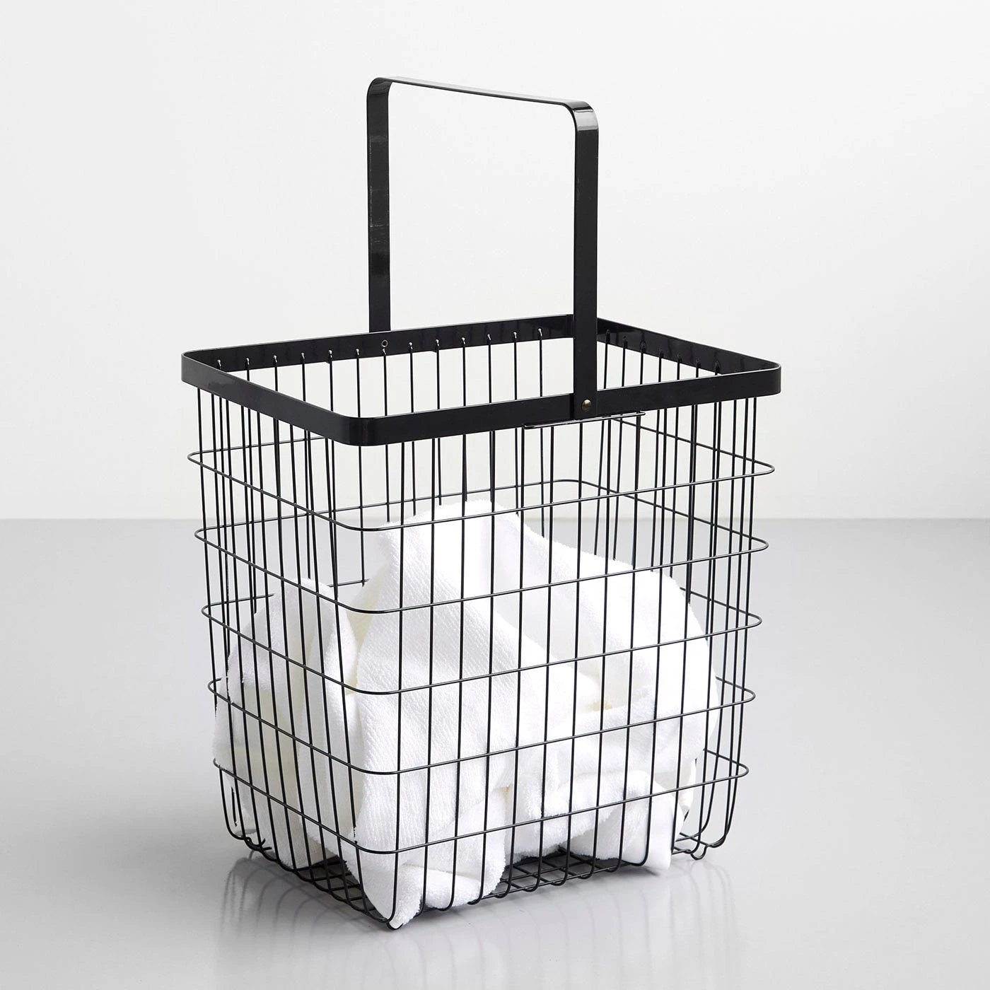 It’s time to say goodbye to plastic storage baskets forever. With its wide-set, geometric wire mesh, the Tower Black Large Floor Basket makes a strong modern statement wherever you place it. Attach the handle and use it to carry laundry, position it by the front door to collect umbrellas, or tuck it near the fireplace filled with lovely wood – the opportunities are endless.